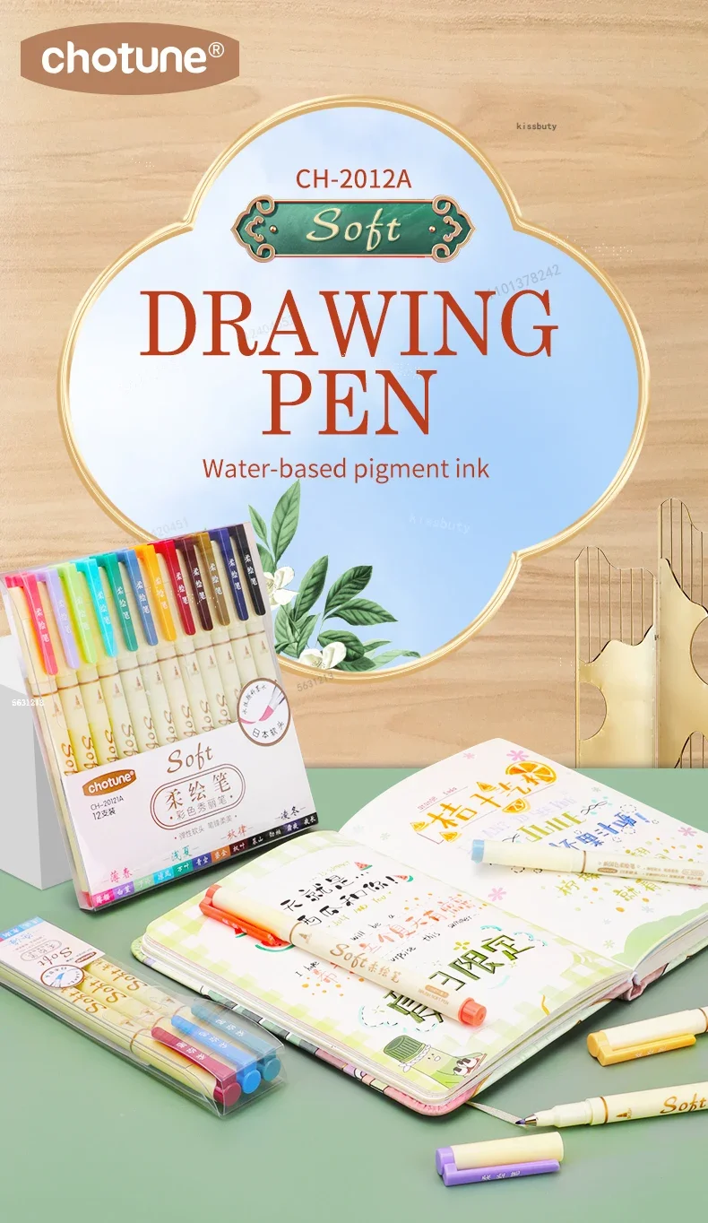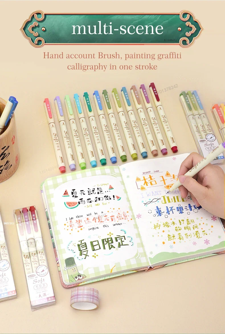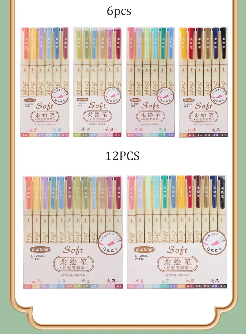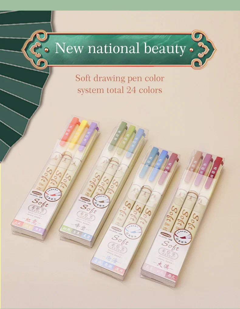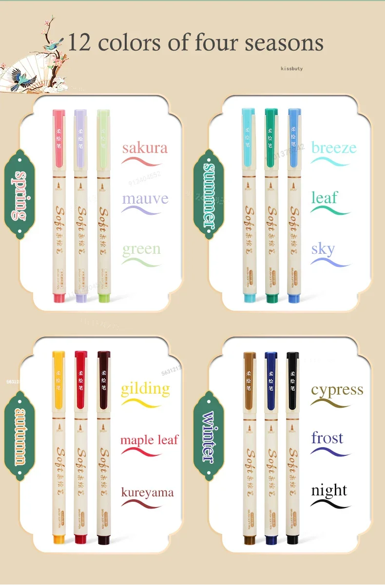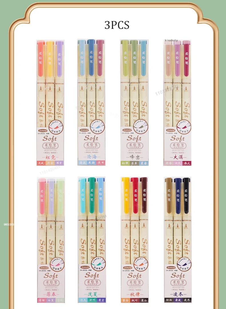 3Pcs/set Four Seasons Soft Brush Painting Pen Lettering Calligraphy Practice Retro Art Marker Pens Set Drawing Art Stationery