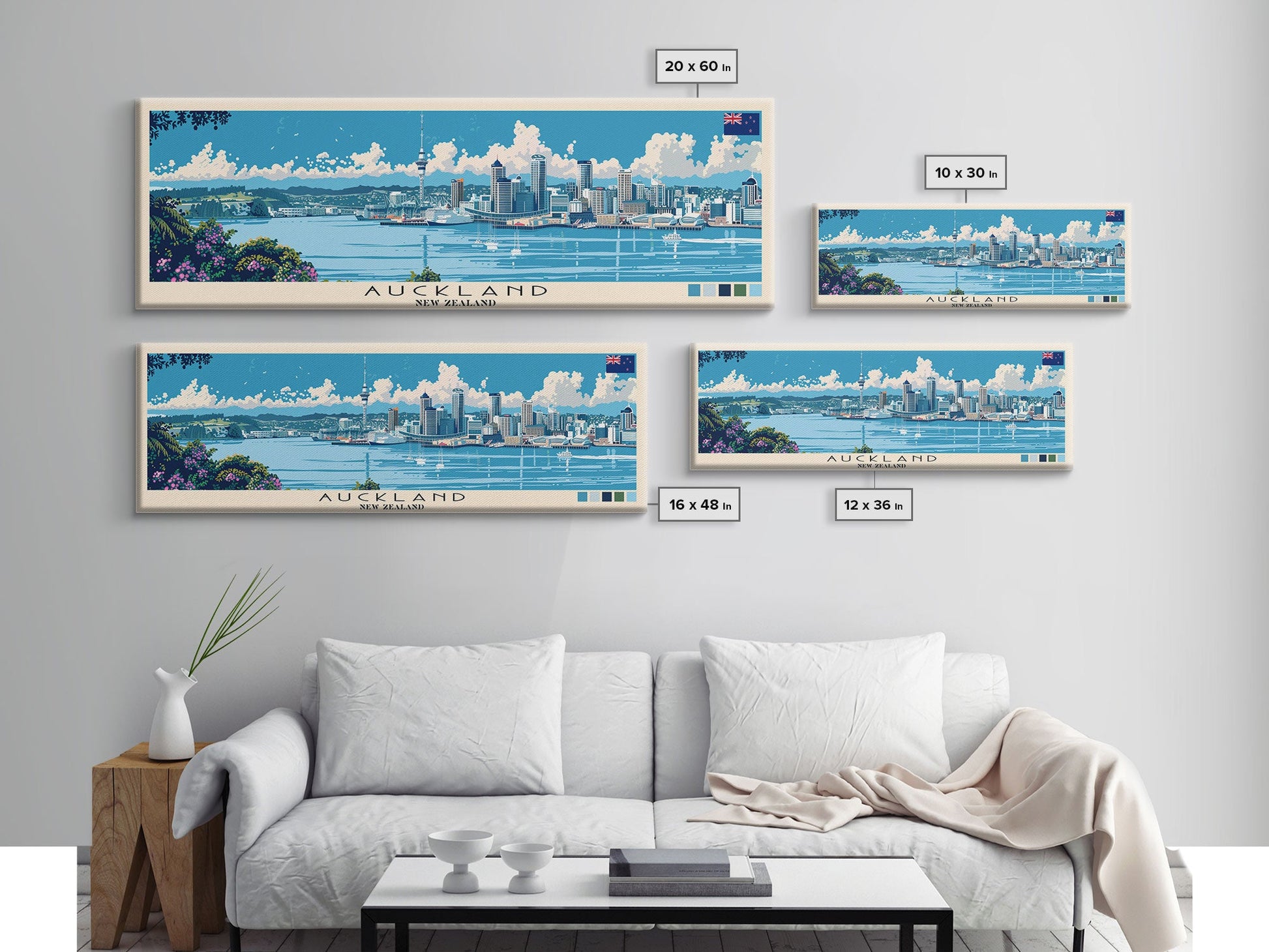 Panorama-Leinwanddruck Auckland, Neuseeland, Gemälde Auckland, Neuseeland, Kunst aus Neuseeland, Reiseposter Auckland, Reisekunst, Urlaubsgeschenk