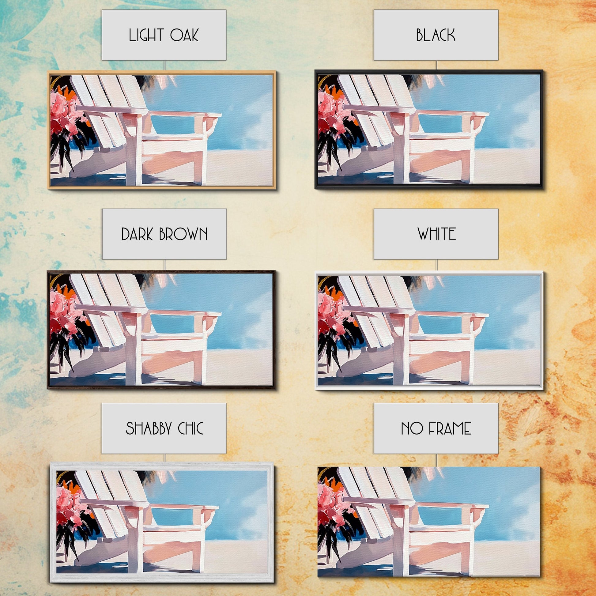 Strandstuhl, Sommerentspannung, Küstenkunst für draußen, Urlaubsästhetik, tropische Wohndekoration, minimalistische Pastellfarben, Leinwanddruck, Terrasse