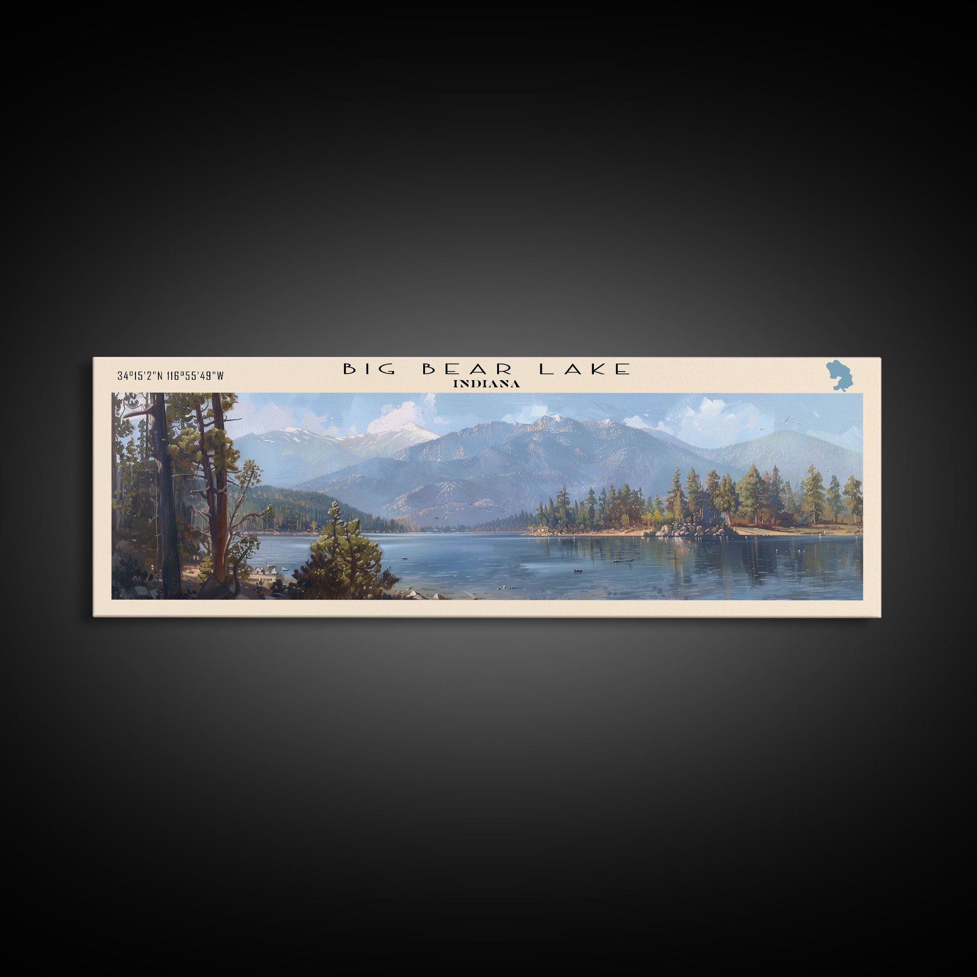 Panorama-Leinwanddruck „Big Bear Lake, Kalifornien“ mit Rahmen, Dekoration fürs Seehaus, malerischer Ausblick, Reiseposter, moderne Kunst, Natur-Wandbild