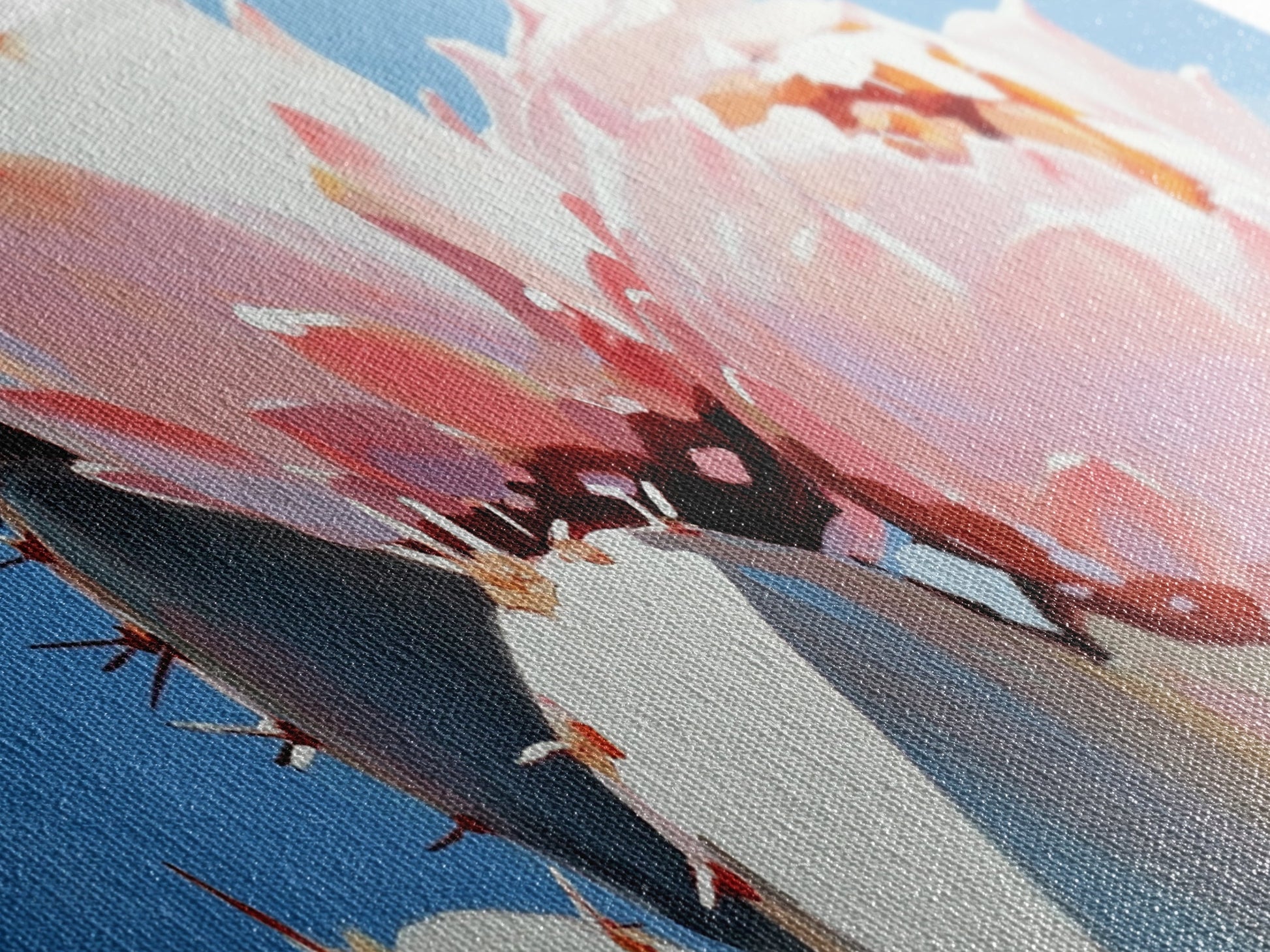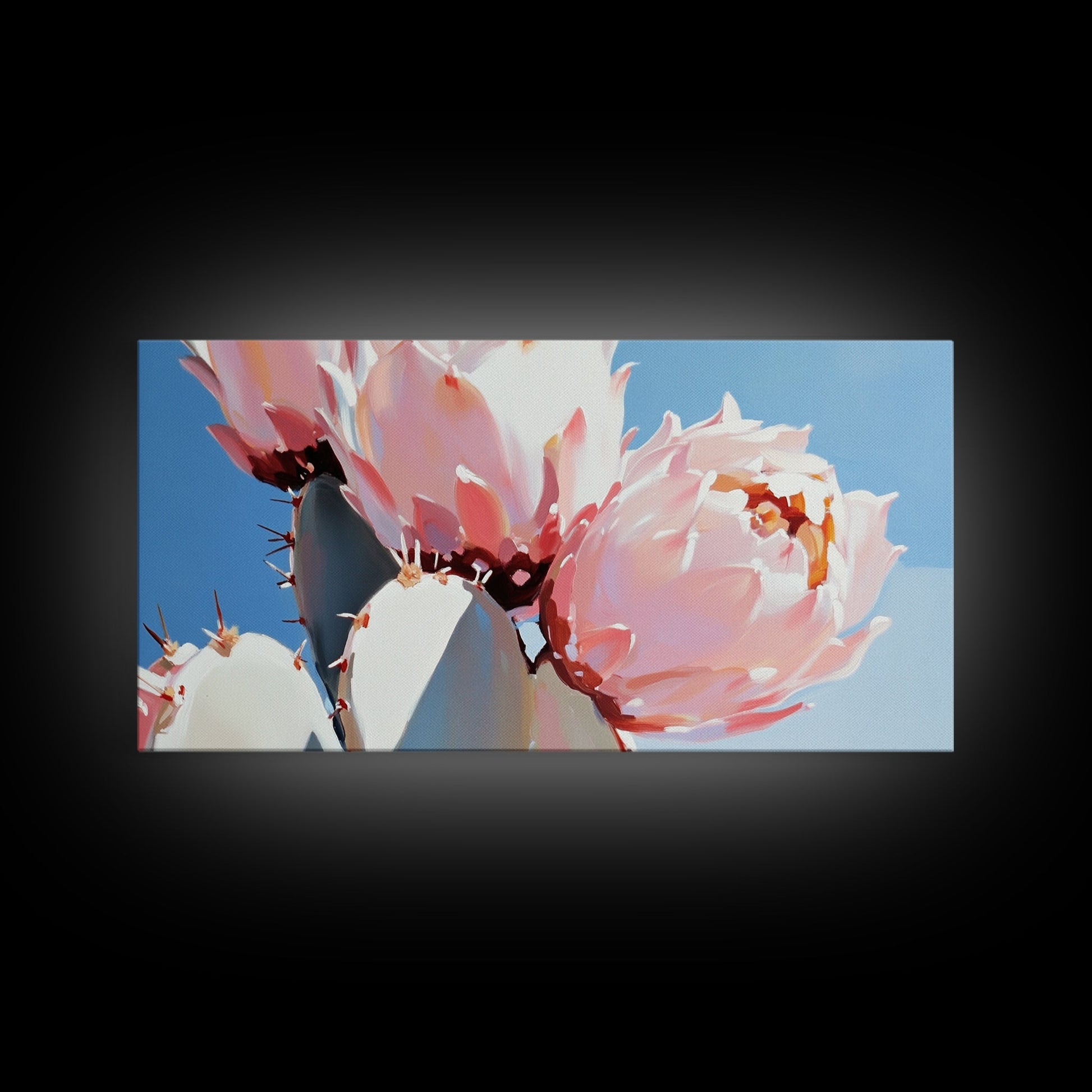 Kaktusblüten, Botanische Wüstenkunst, Leuchtende Sukkulente, Rosa blühender Kaktus, Bohème-Ästhetik, Leinwanddruck, Wohnzimmer