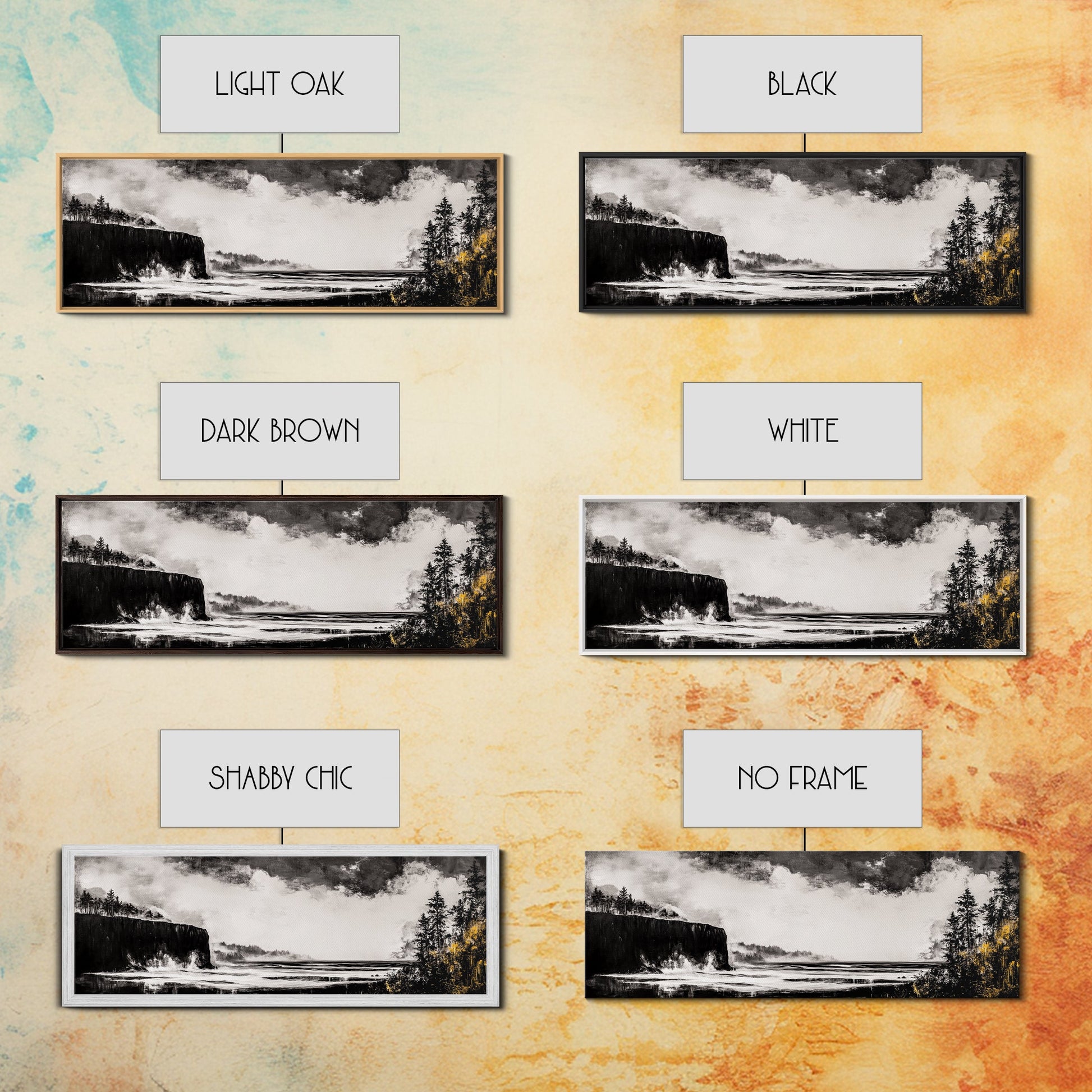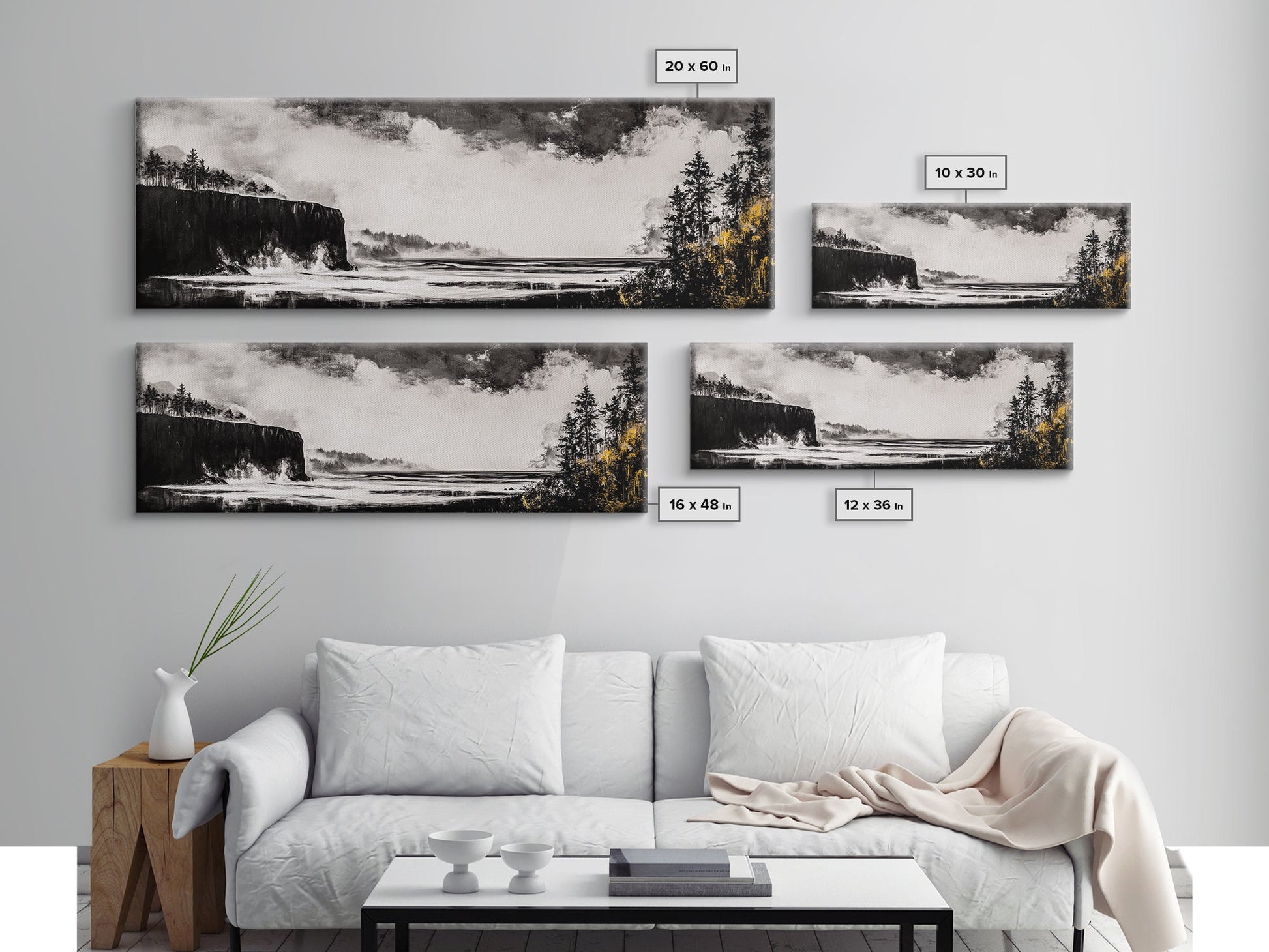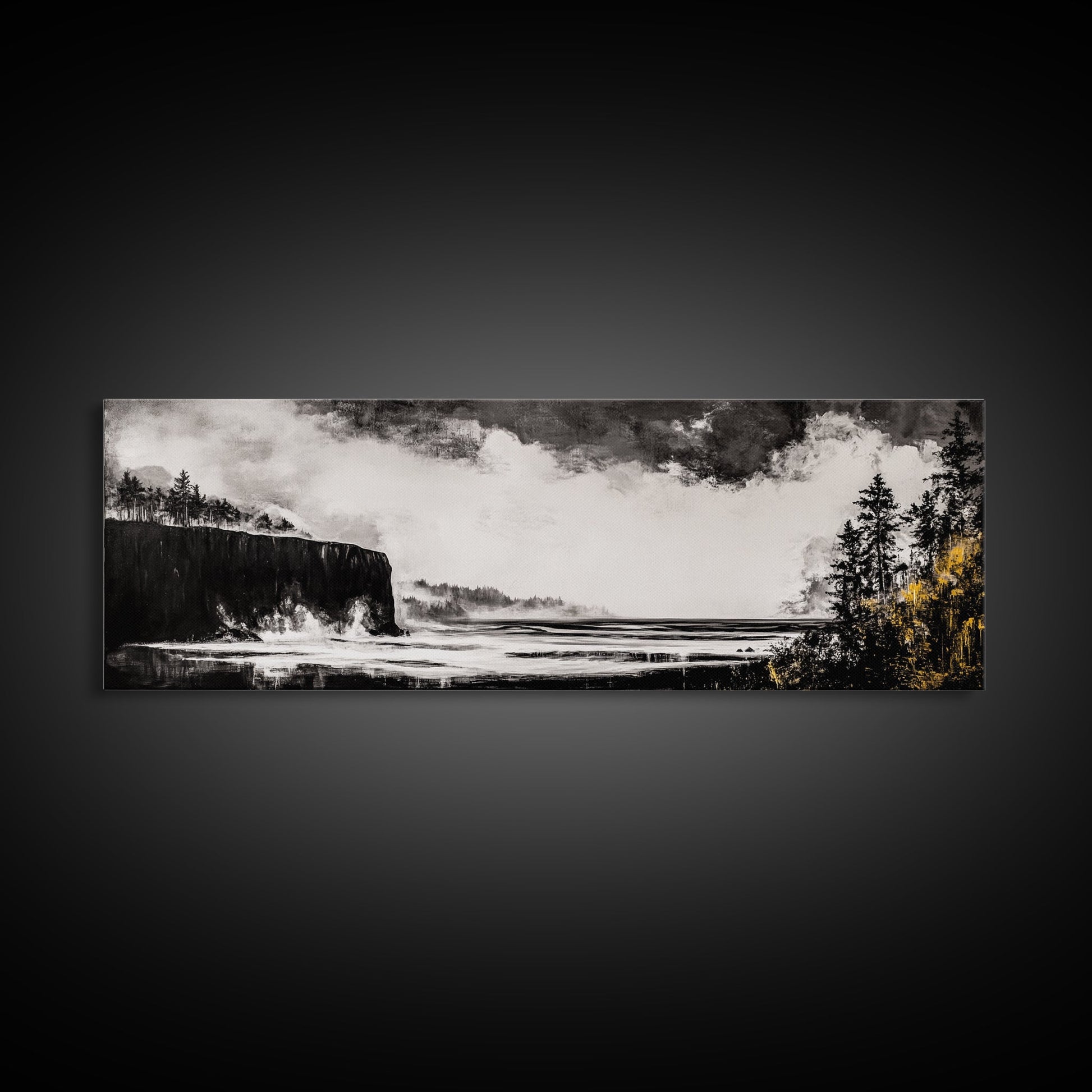 Steilküste, dramatisches Meerespanorama, stimmungsvolle Küste, monochrom, gerahmter Leinwanddruck, Küsten-Wandkunst, nautische Dekoration, großes Wandbild