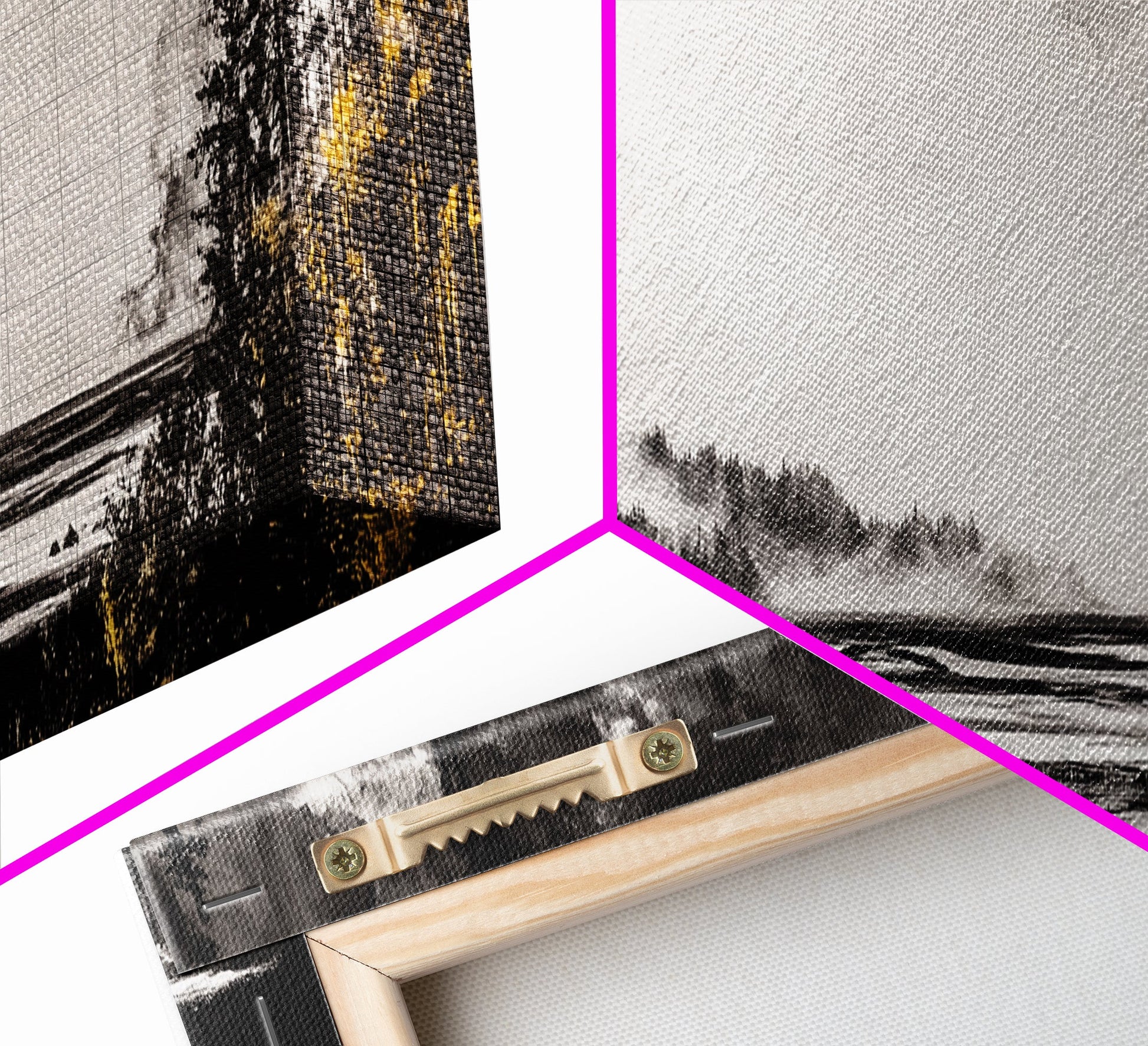 *VERSAND: Jede Leinwand wird sorgfältig in Luftpolsterfolie und Schaumstoffecken verpackt und fertig montiert und mit Zackenaufhängern in einem flachen Karton versendet. Sie benötigen lediglich einen Hammer!