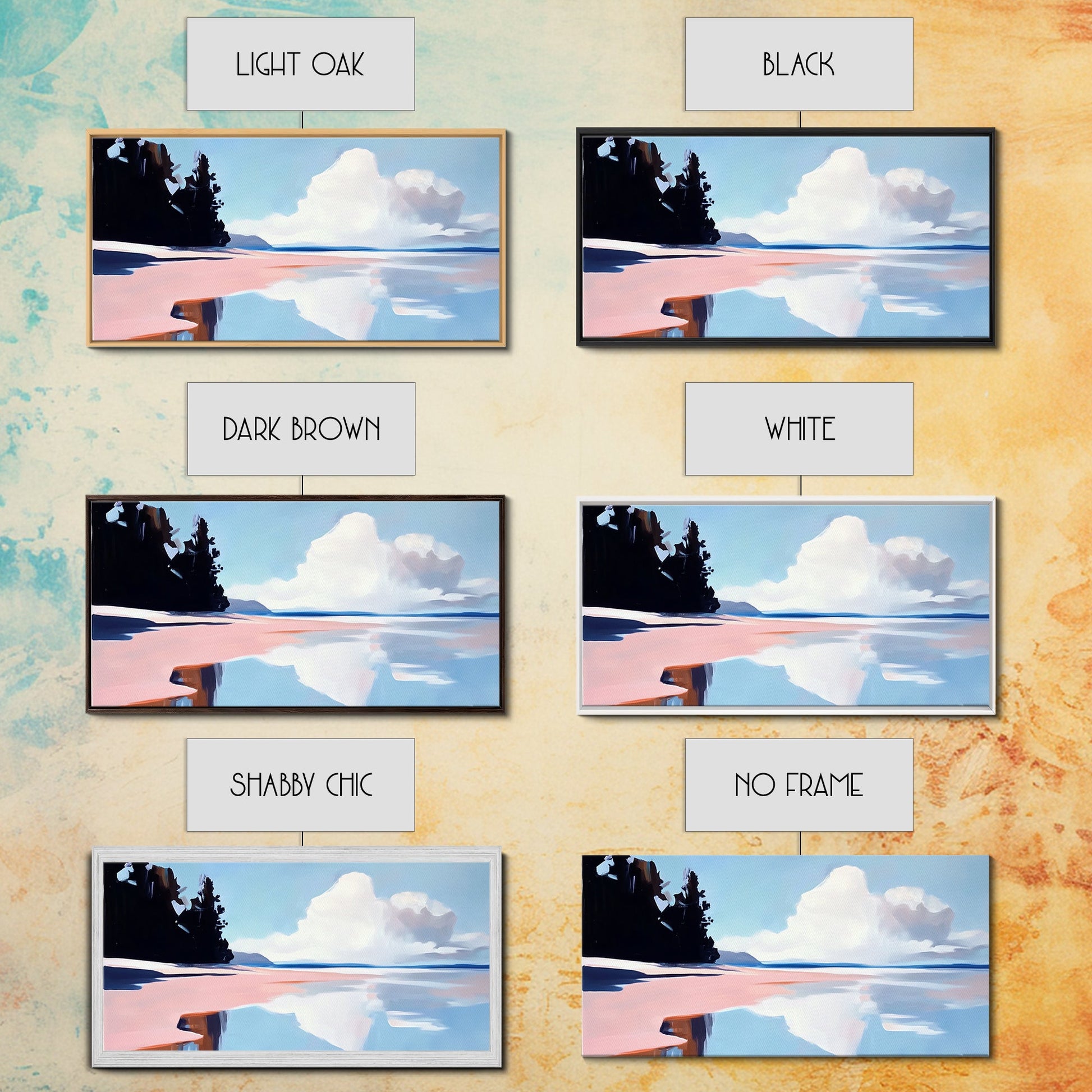 *Optionale Rahmen vergrößern jede Dimension um insgesamt 1,5 Zoll. Beispielsweise misst eine 10x20-Leinwand mit Rahmen insgesamt 11,5x21,5 Zoll. Alle gerahmten Leinwände haben eine Gesamttiefe von 1,5 Zoll.