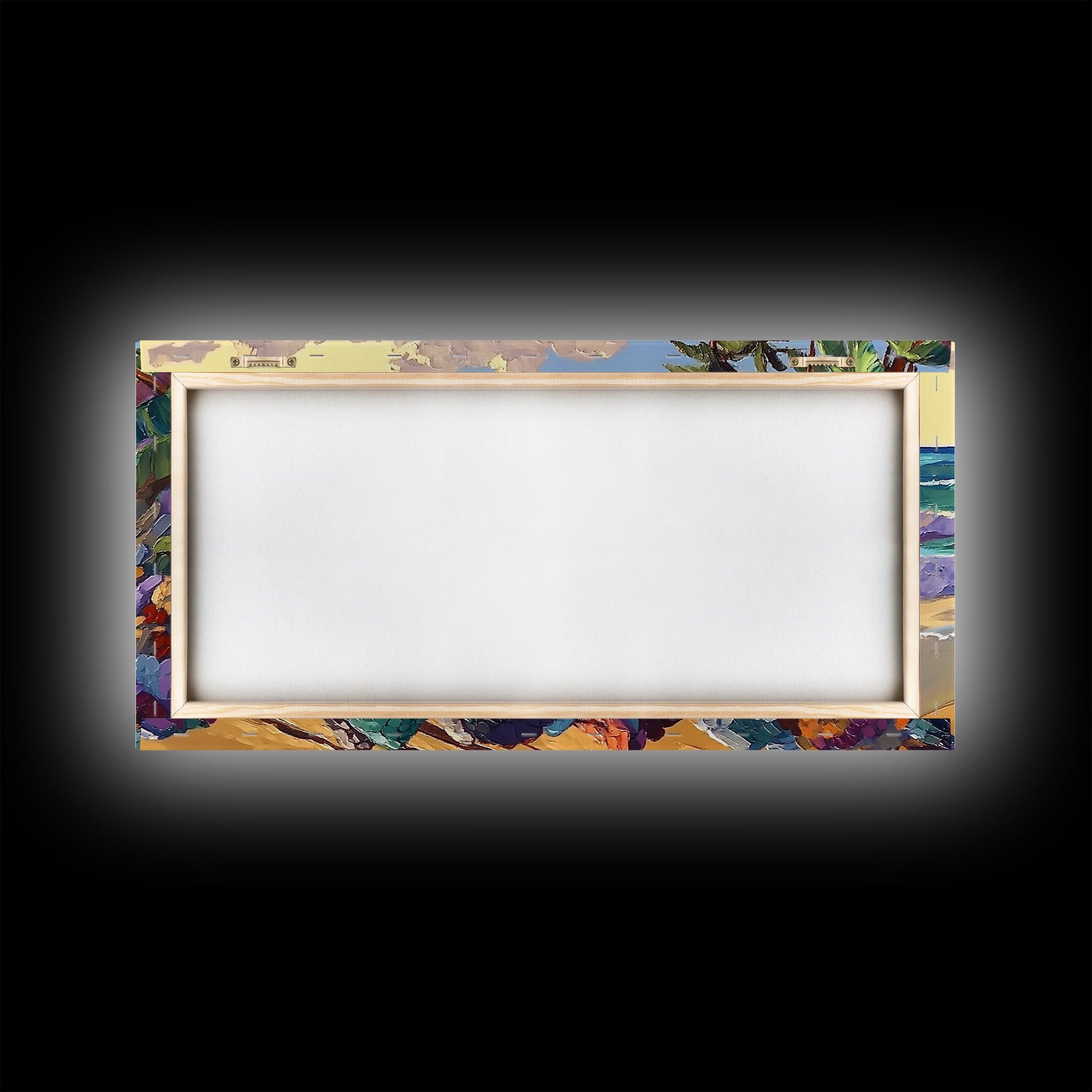 Küstenwagen, tropischer Strand, Meeresküste, gerahmter Leinwanddruck, rustikale Wandkunst, Wohnzimmerdeko im Küstenstil, Gemälde mit Sommerflair