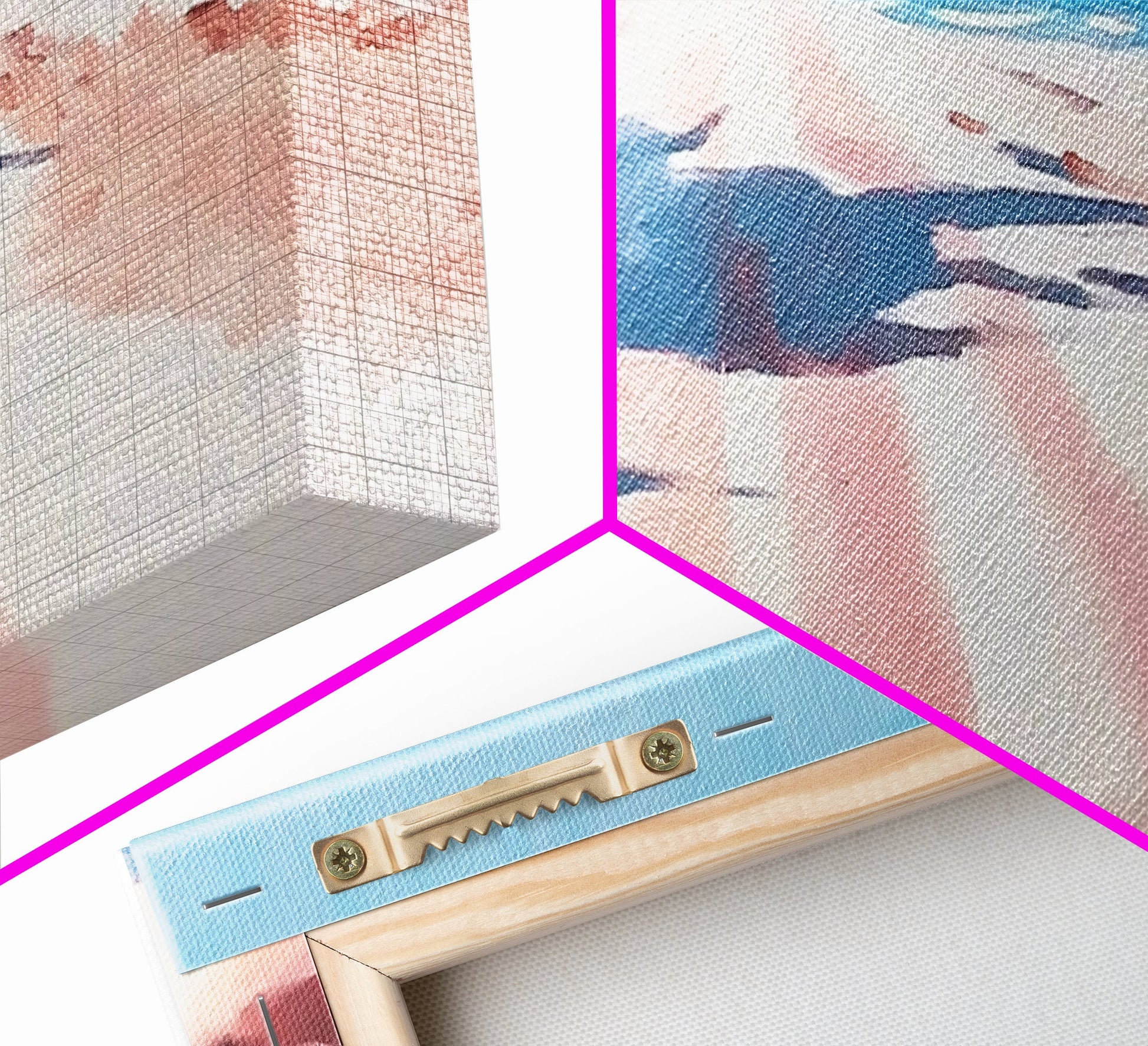 *VERSAND: Jede Leinwand wird sorgfältig in Luftpolsterfolie und Schaumstoffecken verpackt und fertig montiert und mit Zackenaufhängern in einem flachen Karton versendet. Sie benötigen lediglich einen Hammer!