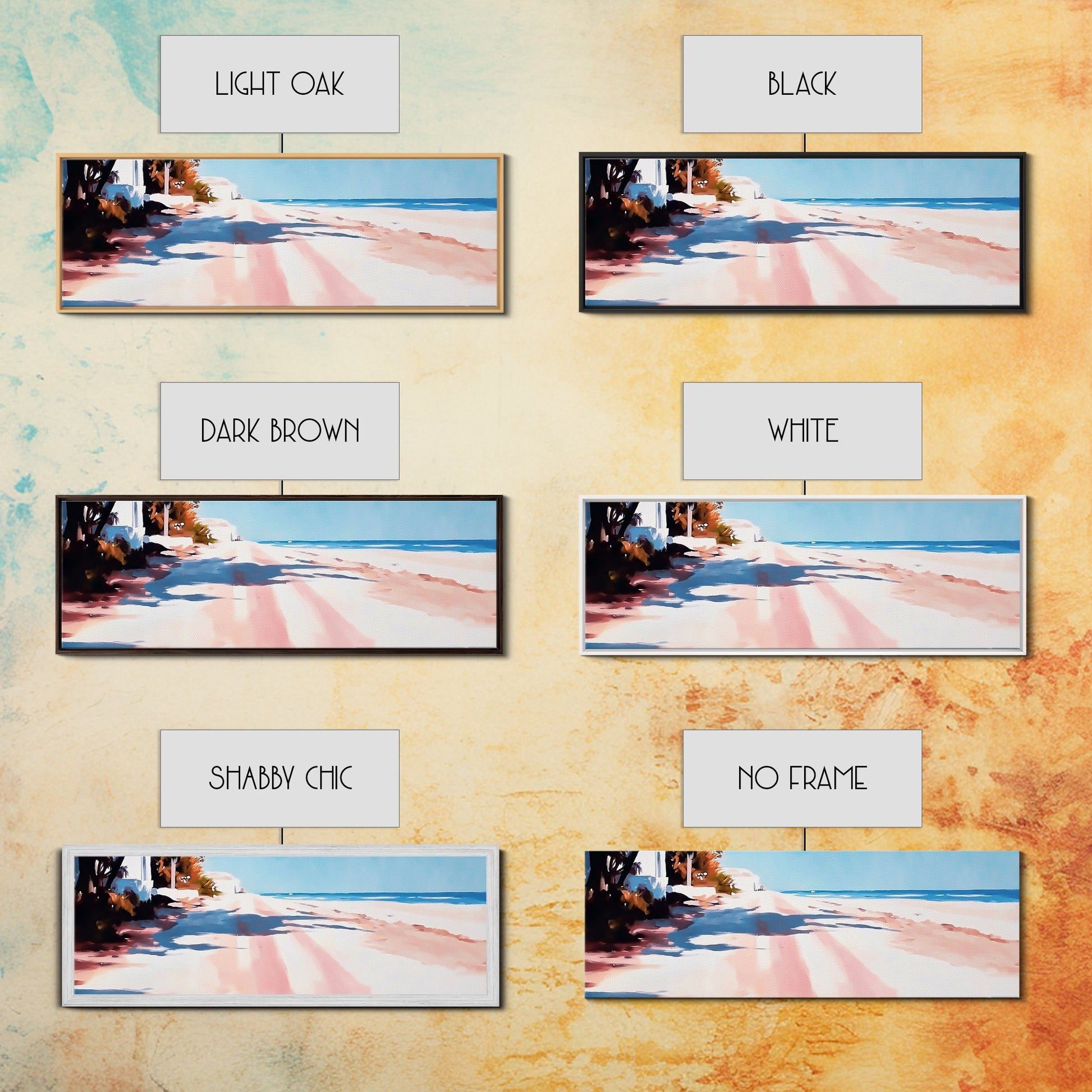 *Optionale Rahmen vergrößern jede Dimension um insgesamt 1,5 Zoll. Beispielsweise misst eine 10x20-Leinwand mit Rahmen insgesamt 11,5x21,5 Zoll. Alle gerahmten Leinwände haben eine Gesamttiefe von 1,5 Zoll.