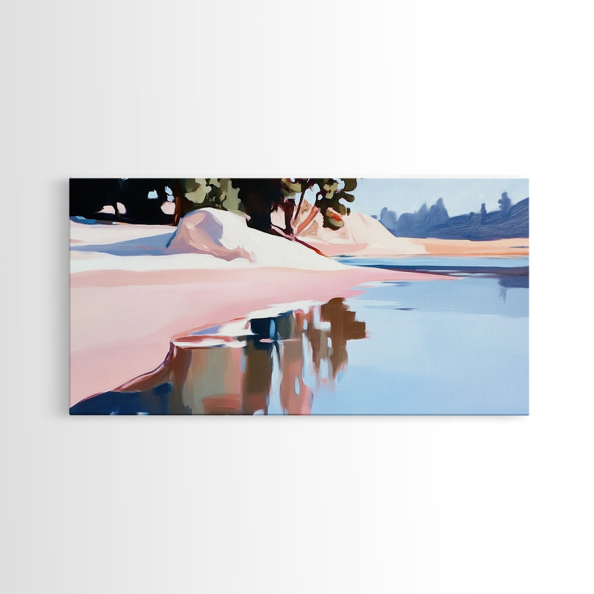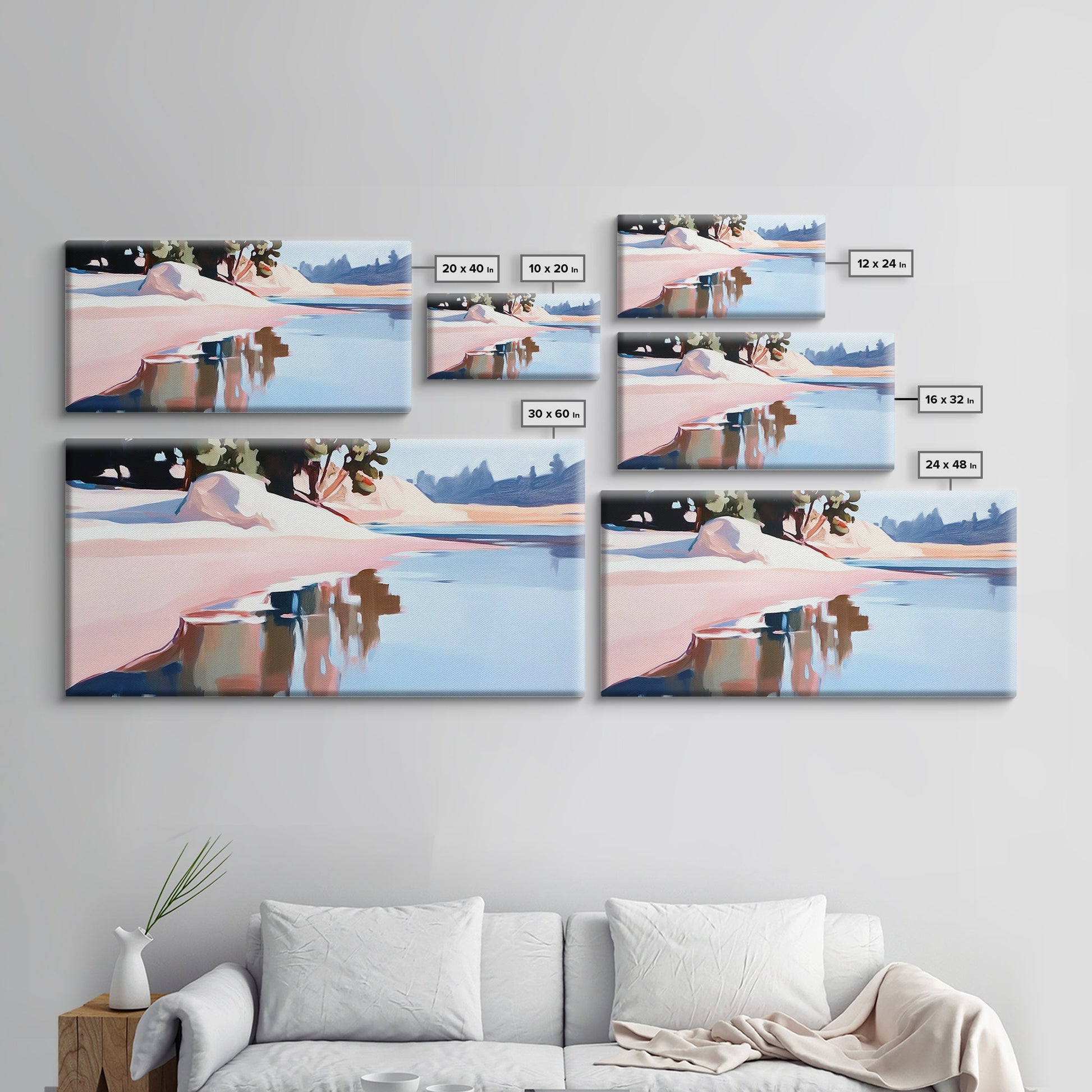 Küstenbaum, Dachüberstand, Leinwanddruck, vom Meer inspirierte Dekoration, moderne Strandwandkunst, pastellfarbene Meereslandschaft, ruhige Szenerie, tropisches Flair