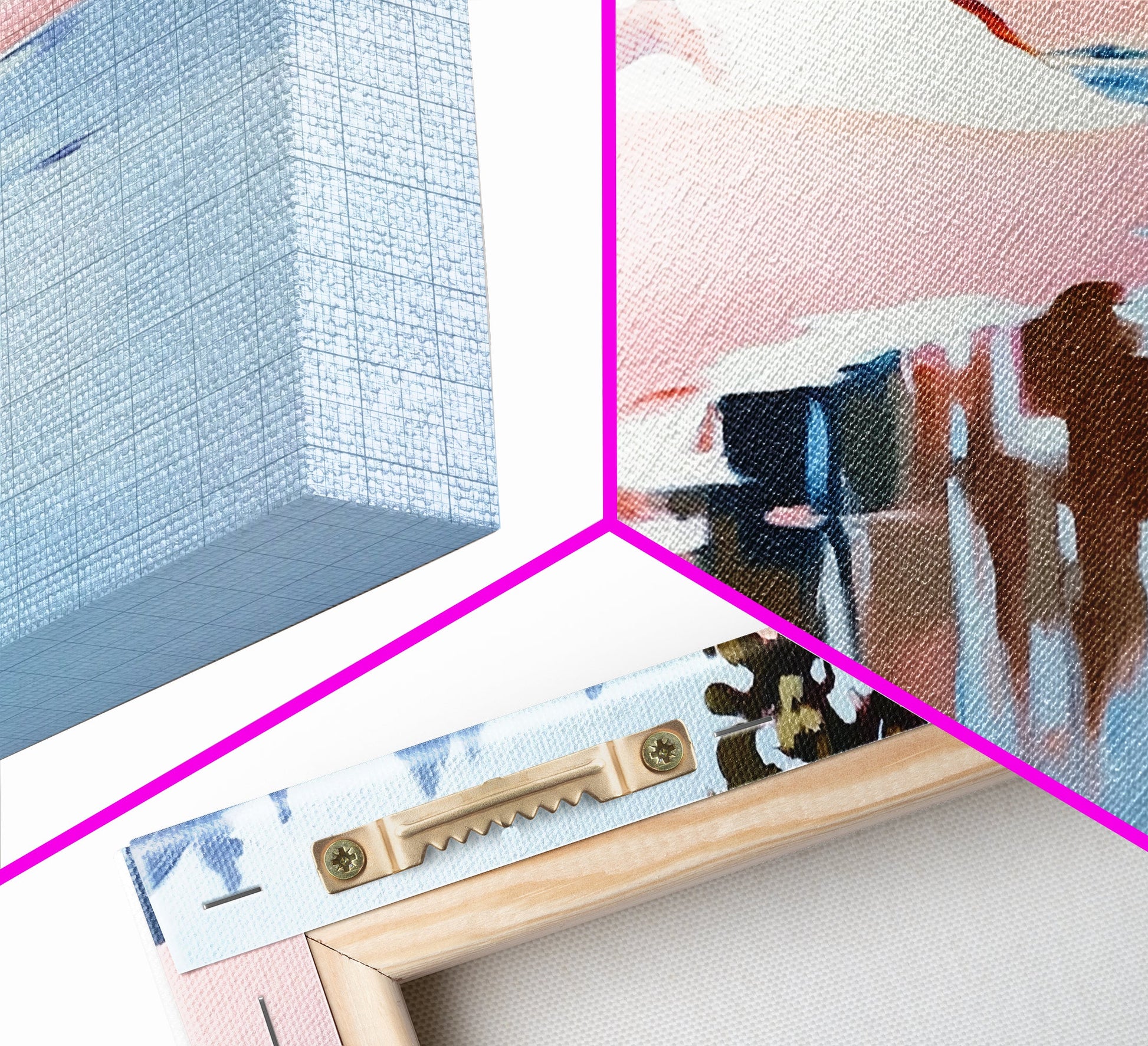 *VERSAND: Jede Leinwand wird sorgfältig in Luftpolsterfolie und Schaumstoffecken verpackt und fertig montiert und mit Zackenaufhängern in einem flachen Karton versendet. Sie benötigen lediglich einen Hammer!
