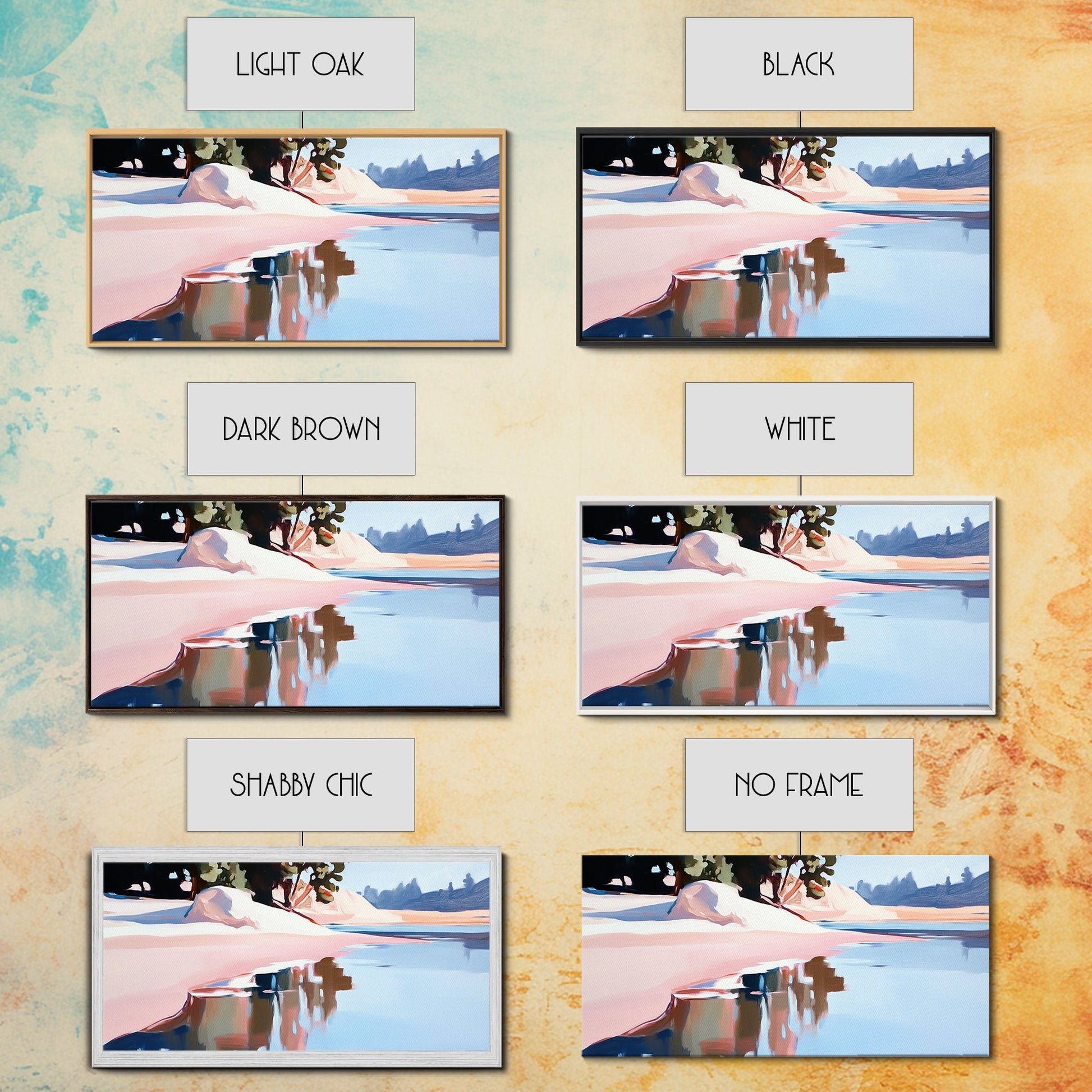 *Optionale Rahmen vergrößern jede Dimension um insgesamt 1,5 Zoll. Beispielsweise misst eine 10x20-Leinwand mit Rahmen insgesamt 11,5x21,5 Zoll. Alle gerahmten Leinwände haben eine Gesamttiefe von 1,5 Zoll.