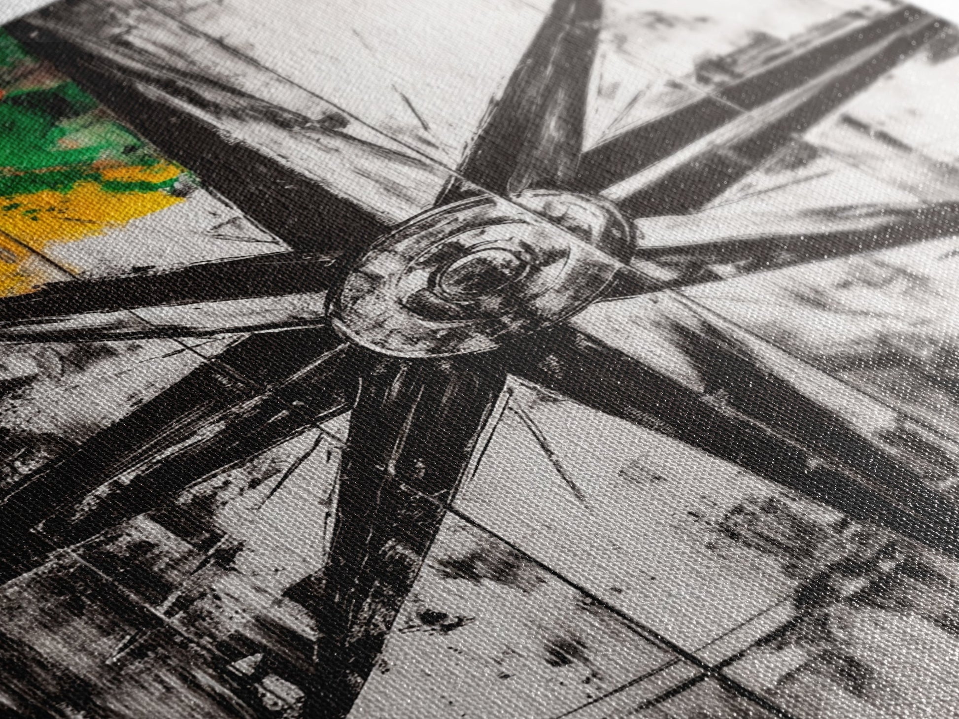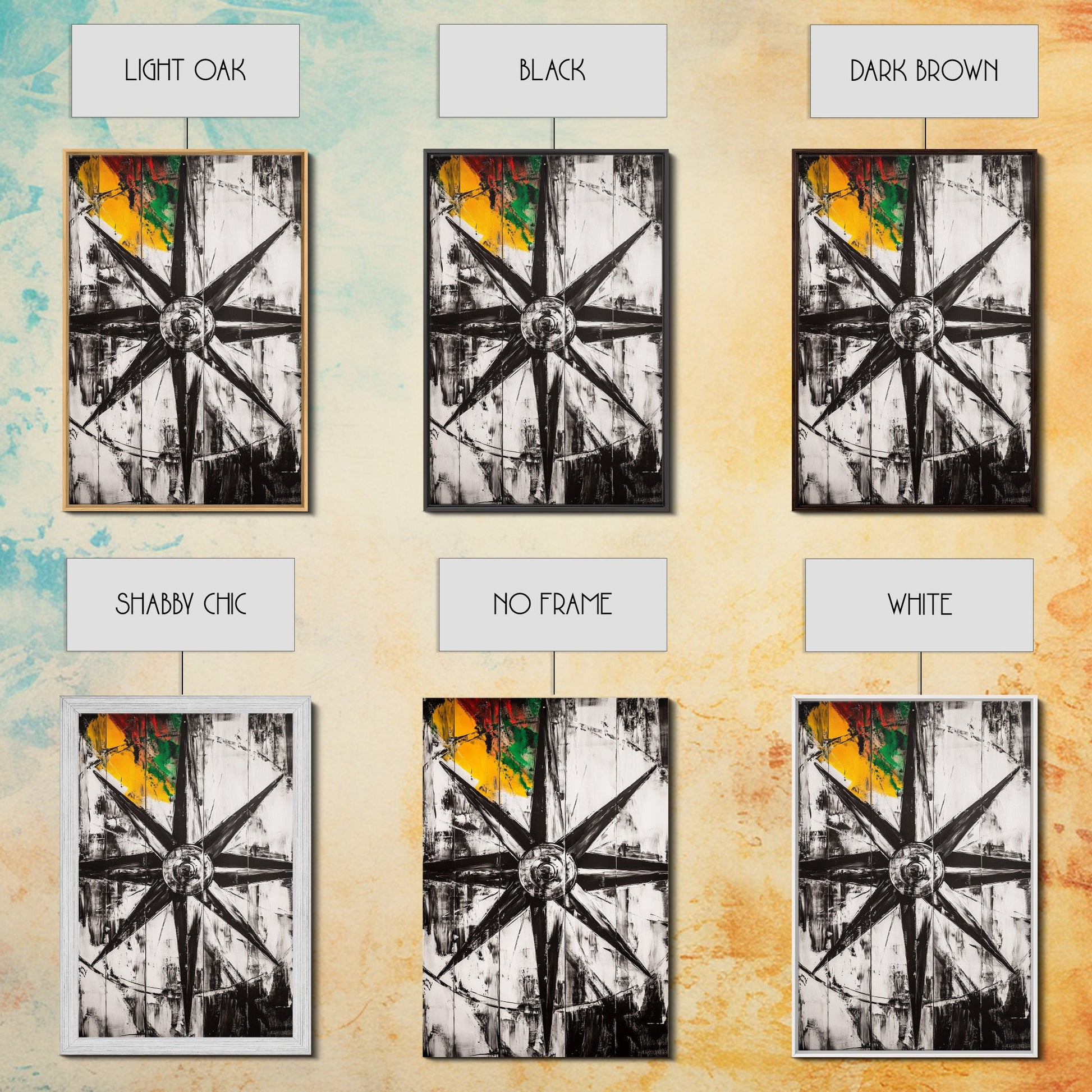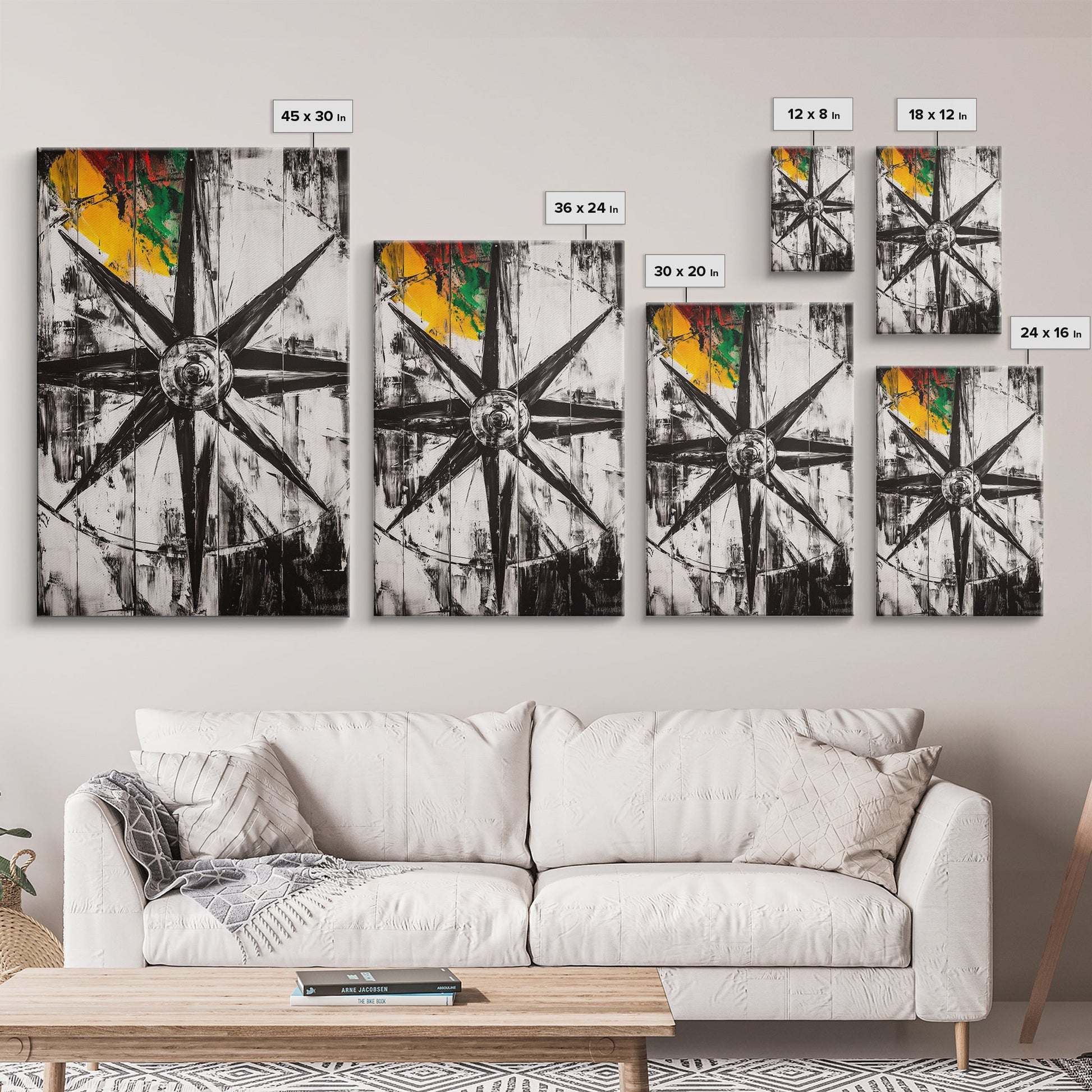 Kompassrose, nautisches Symbol, abstraktes Design, Leinwanddruck, Schwarz-Weiß-Kunst, Küsten-Wanddekoration, moderne minimalistische Kunst