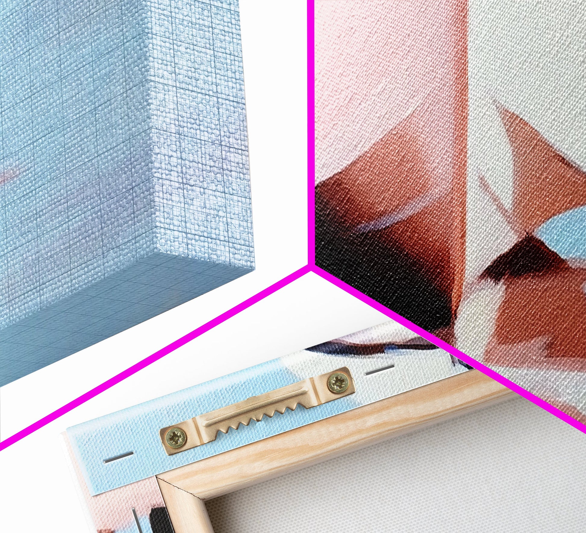 *VERSAND: Jede Leinwand wird sorgfältig in Luftpolsterfolie und Schaumstoffecken verpackt und fertig montiert und mit Zackenaufhängern in einem flachen Karton versendet. Sie benötigen lediglich einen Hammer!