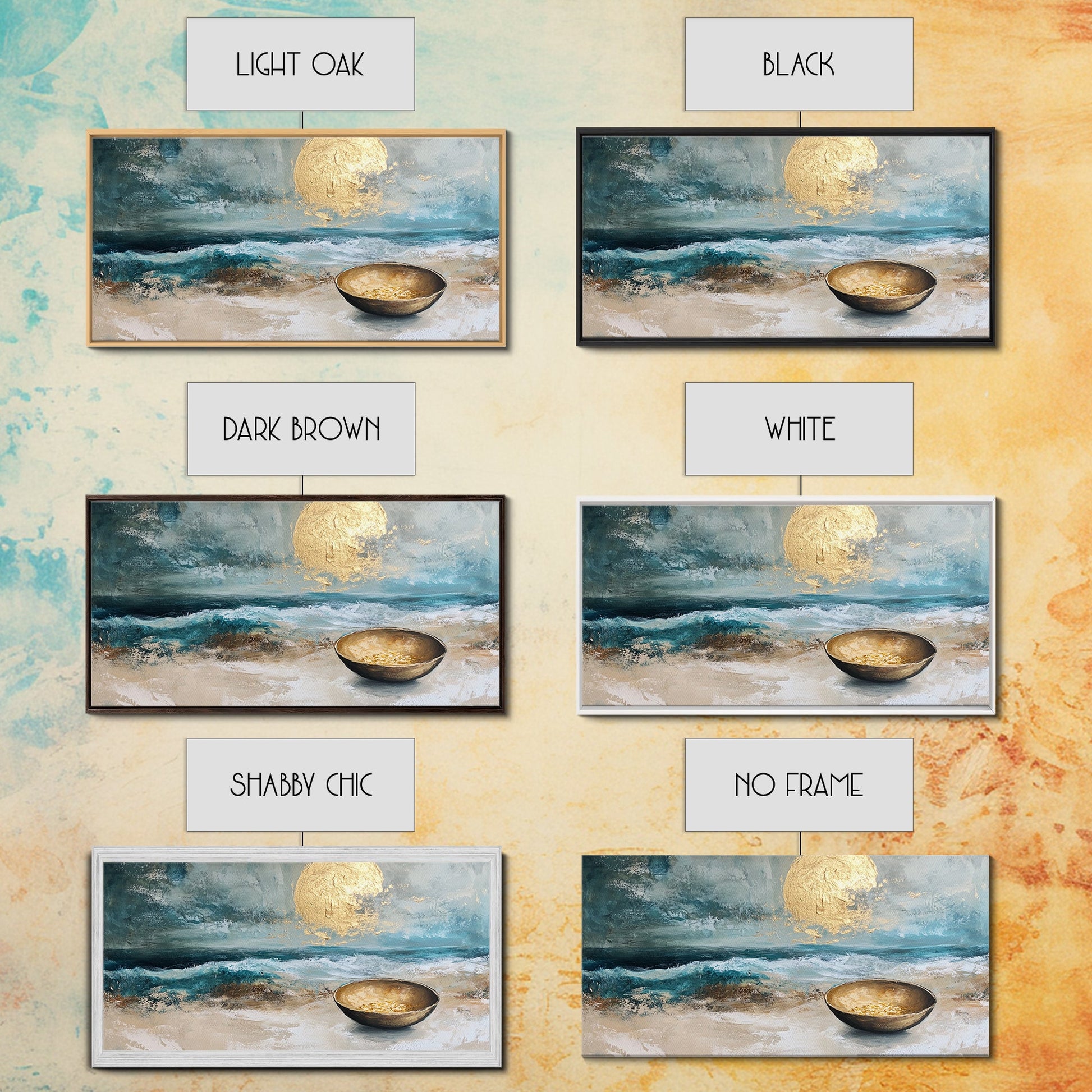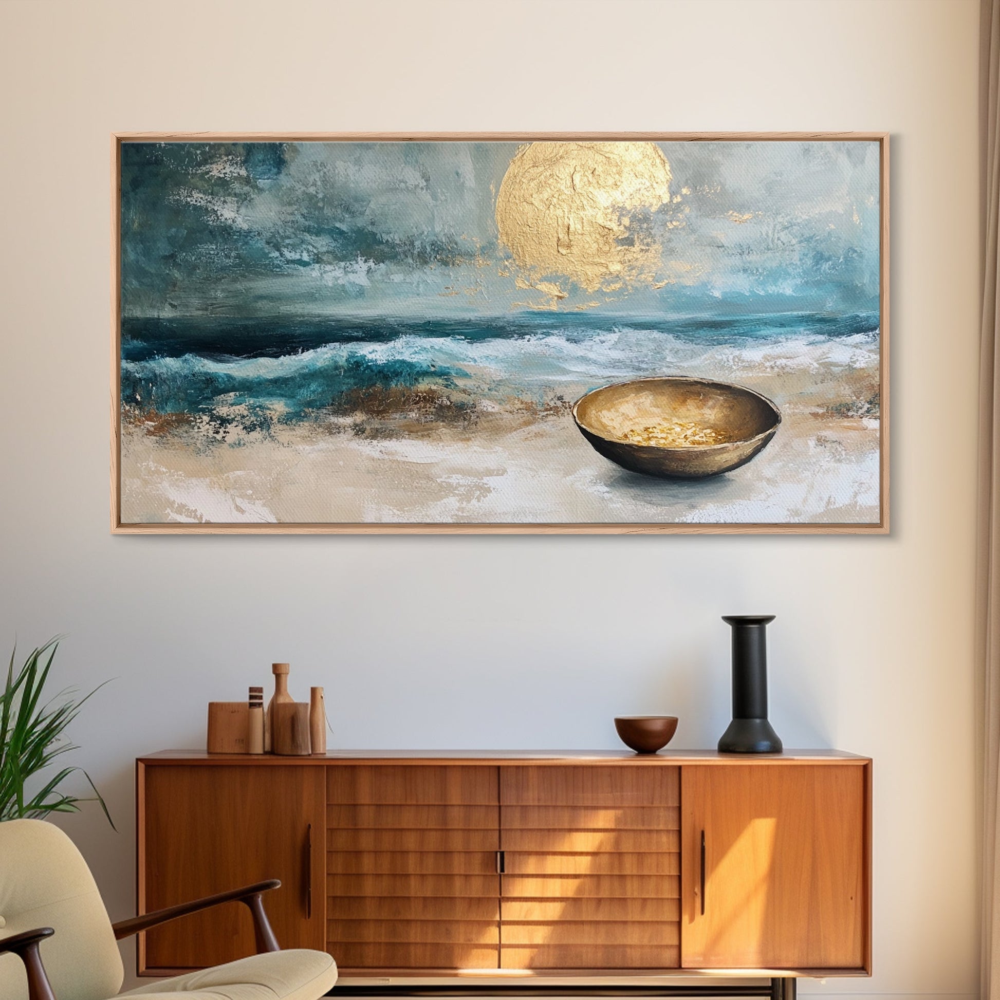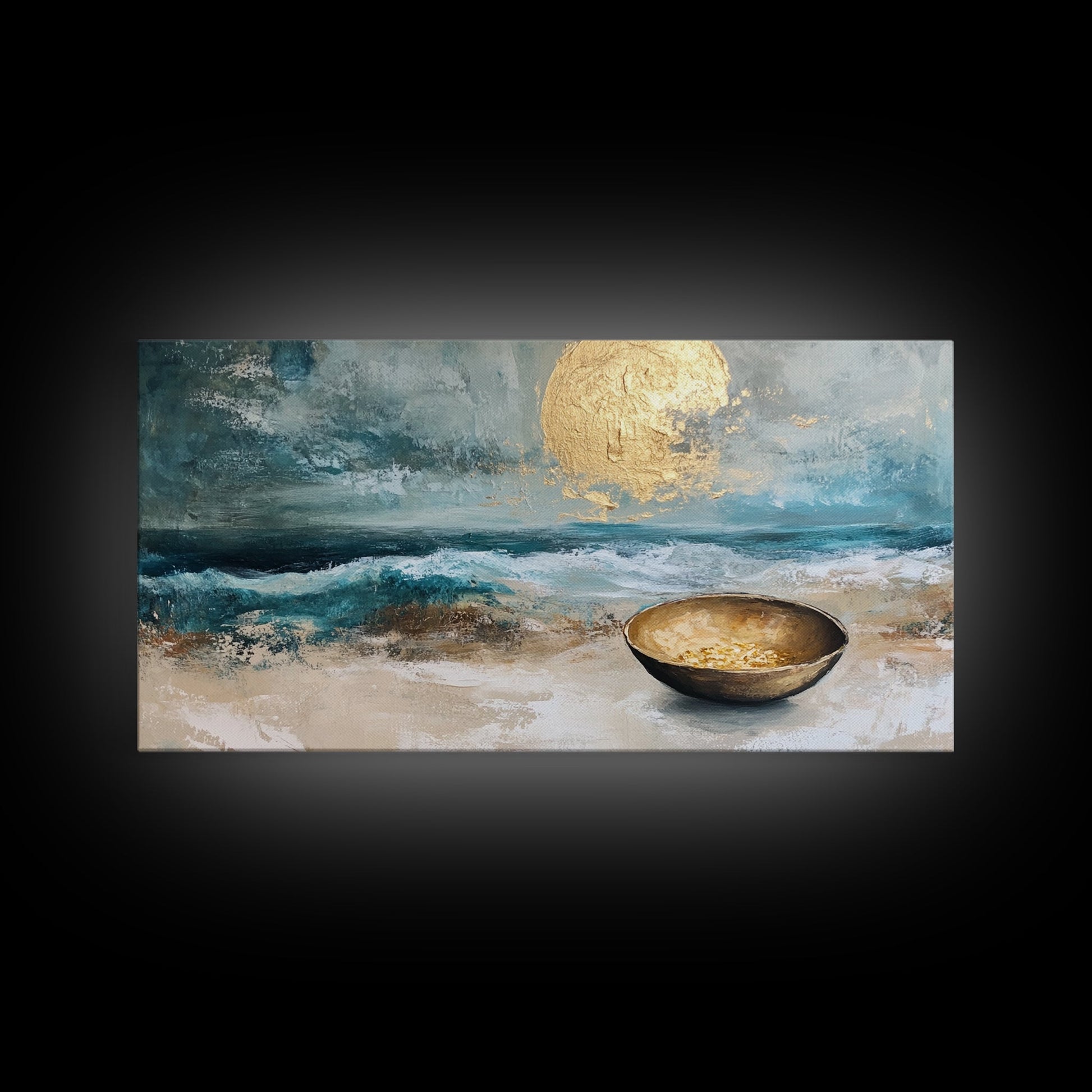 Golden Moon, coastal decor, ocean painting, nautical painting, seascape painting, framed canvas print, extra wide art