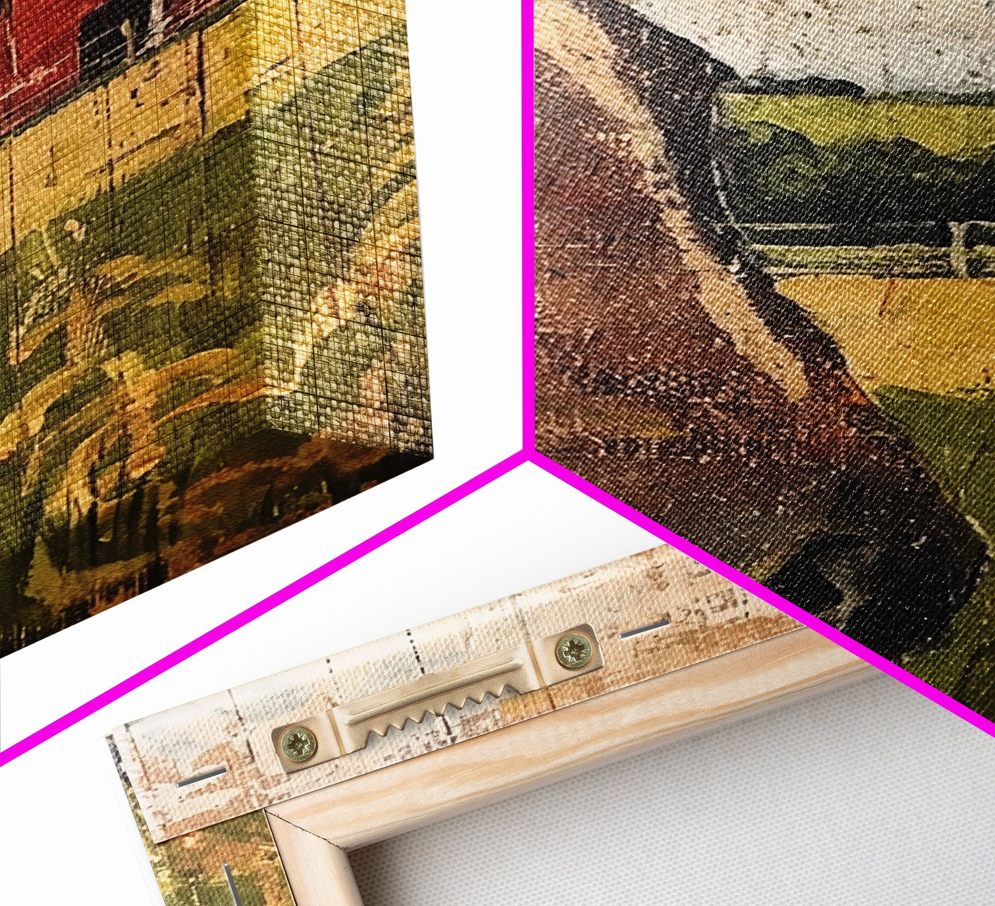 *VERSAND: Jede Leinwand wird sorgfältig in Luftpolsterfolie und Schaumstoffecken verpackt und fertig montiert und mit Zackenaufhängern in einem flachen Karton versendet. Sie benötigen lediglich einen Hammer!