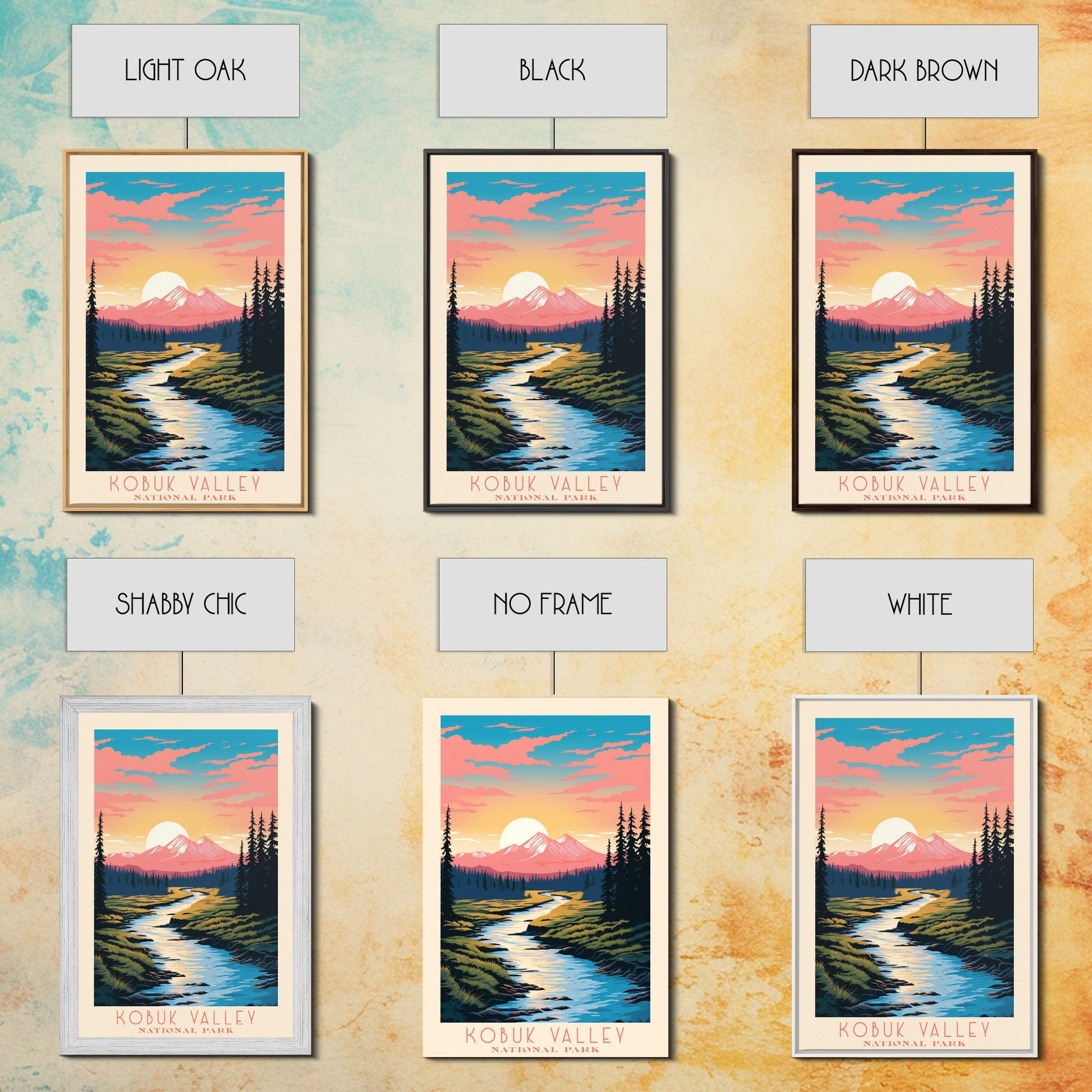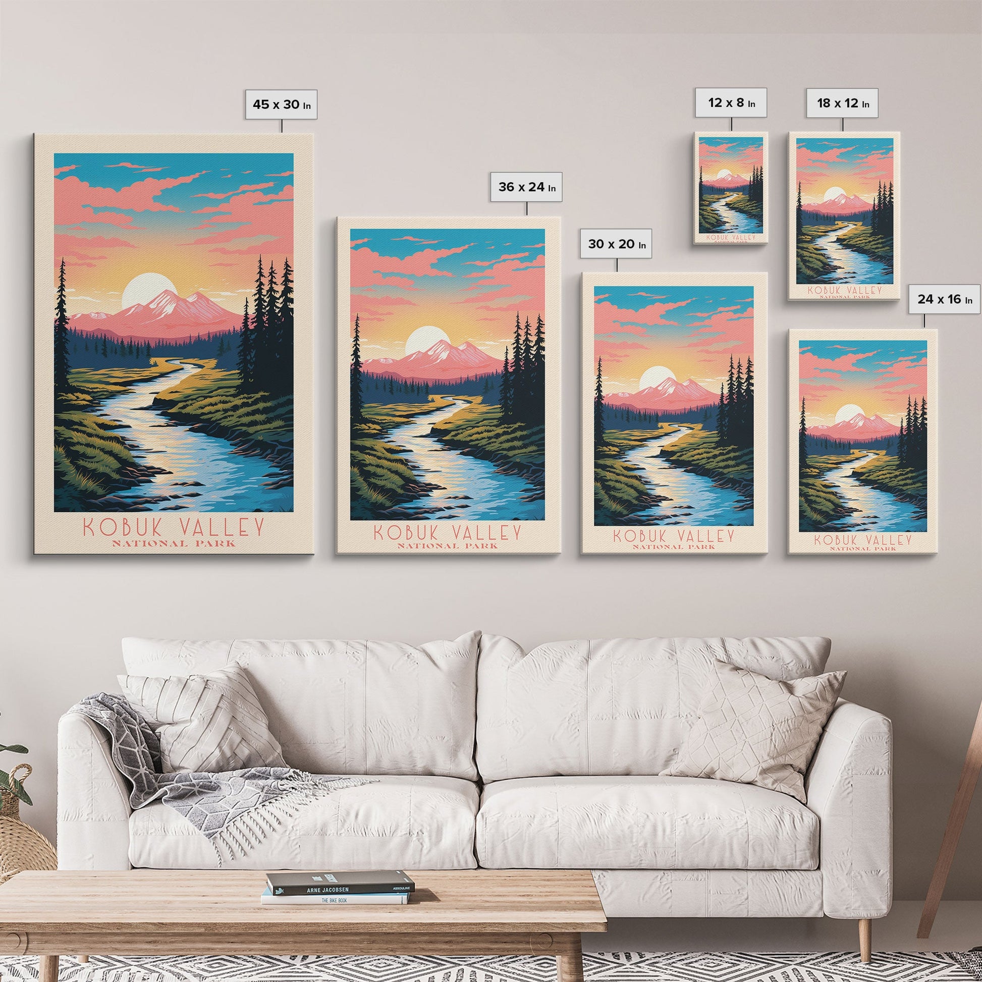 Kobuk Valley Nationalpark, Alaska Reisekunst, Nationalpark-Druck, Minimalistische Reisekunst, Landschaft im Midcentury Modern Retro-Stil