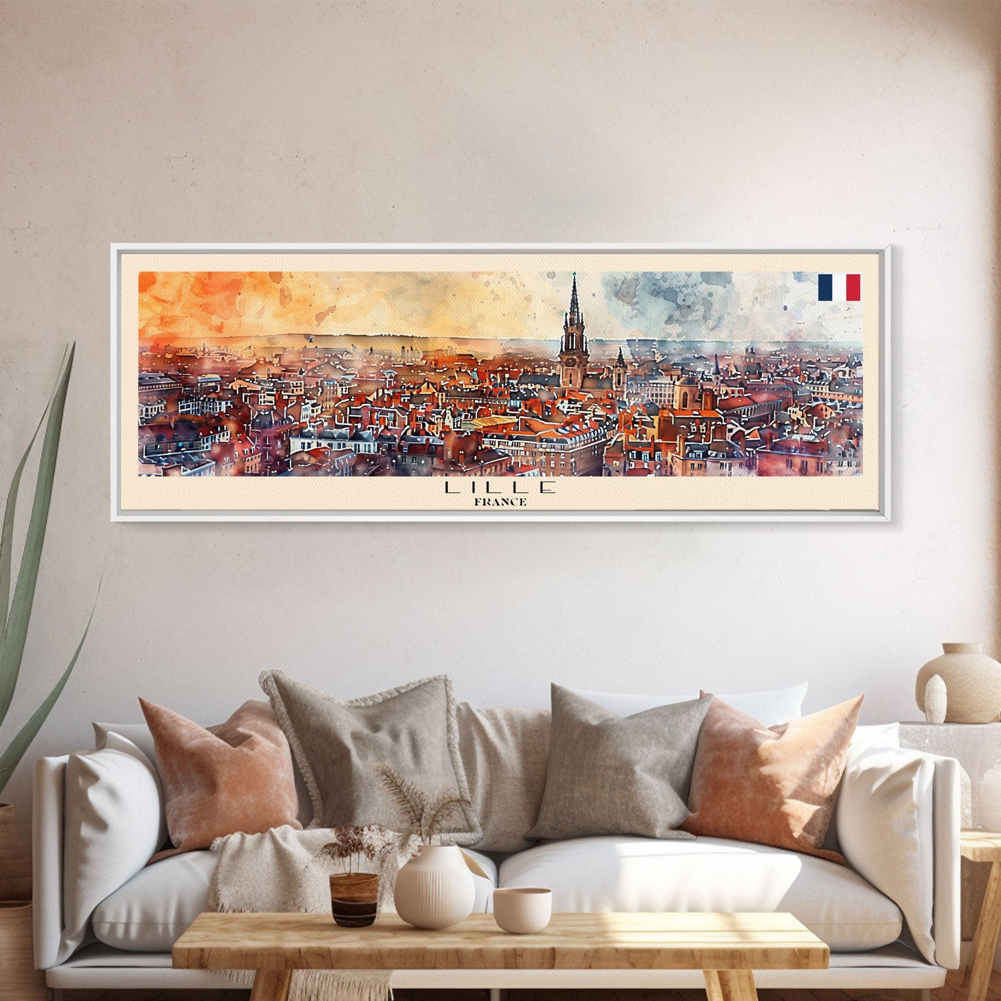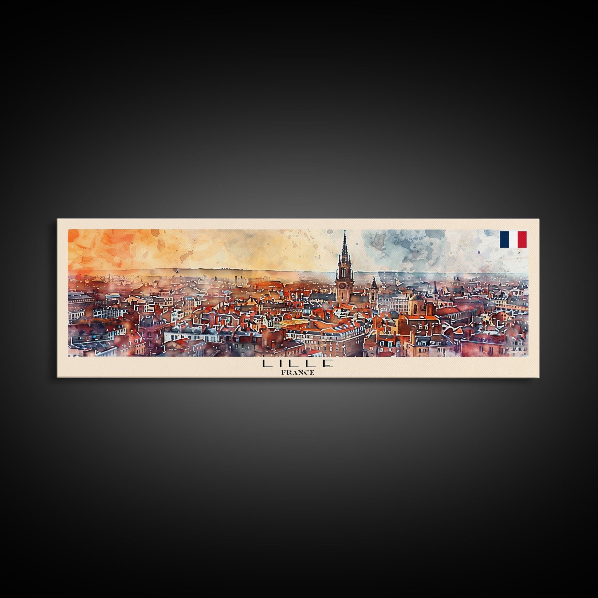 Wandbild „Lille, Frankreich“, Panorama-Reiseposter, gerahmter Panorama-Leinwanddruck, Stadtbild, Wanddekoration, Reisekunst