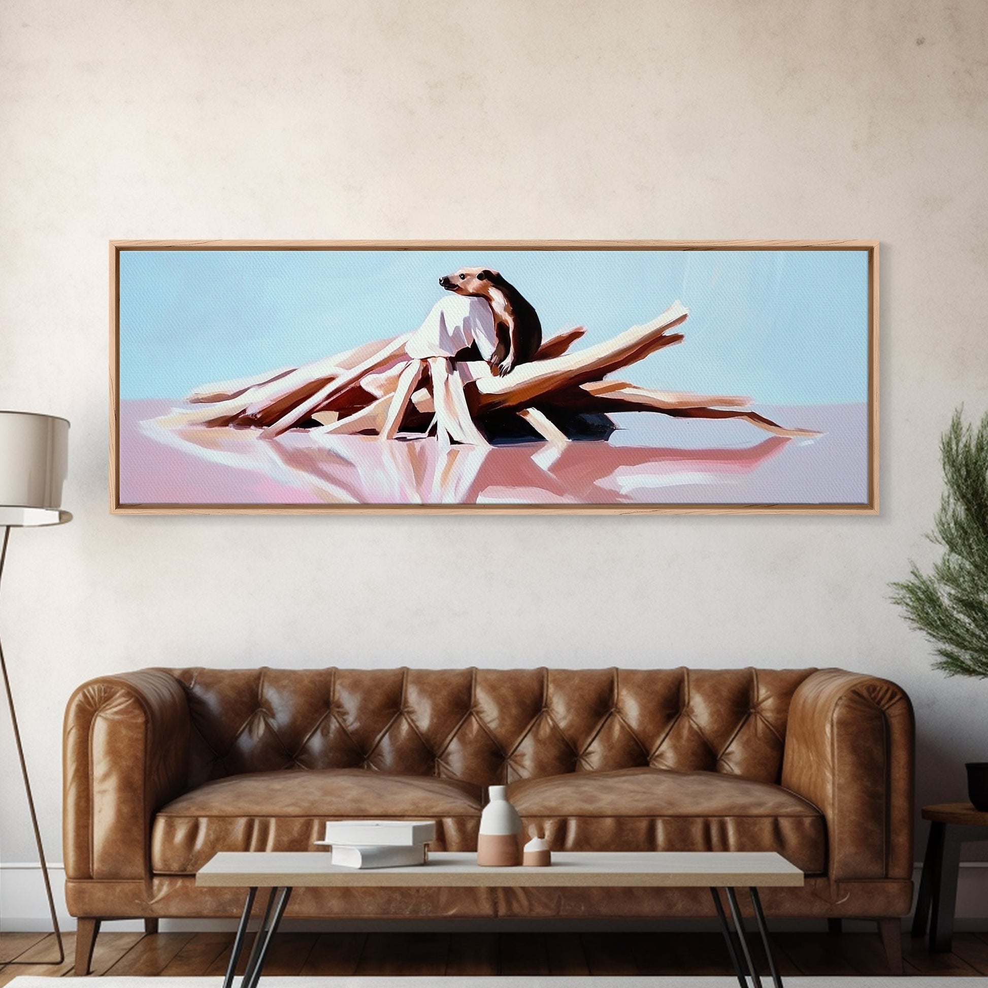 Naturspiegelung, surreale Landschaft, verträumtes Wasser, moderner Leinwanddruck, Wandbild fürs Wohnzimmer, minimalistische Kunst, sanfte Farbästhetik