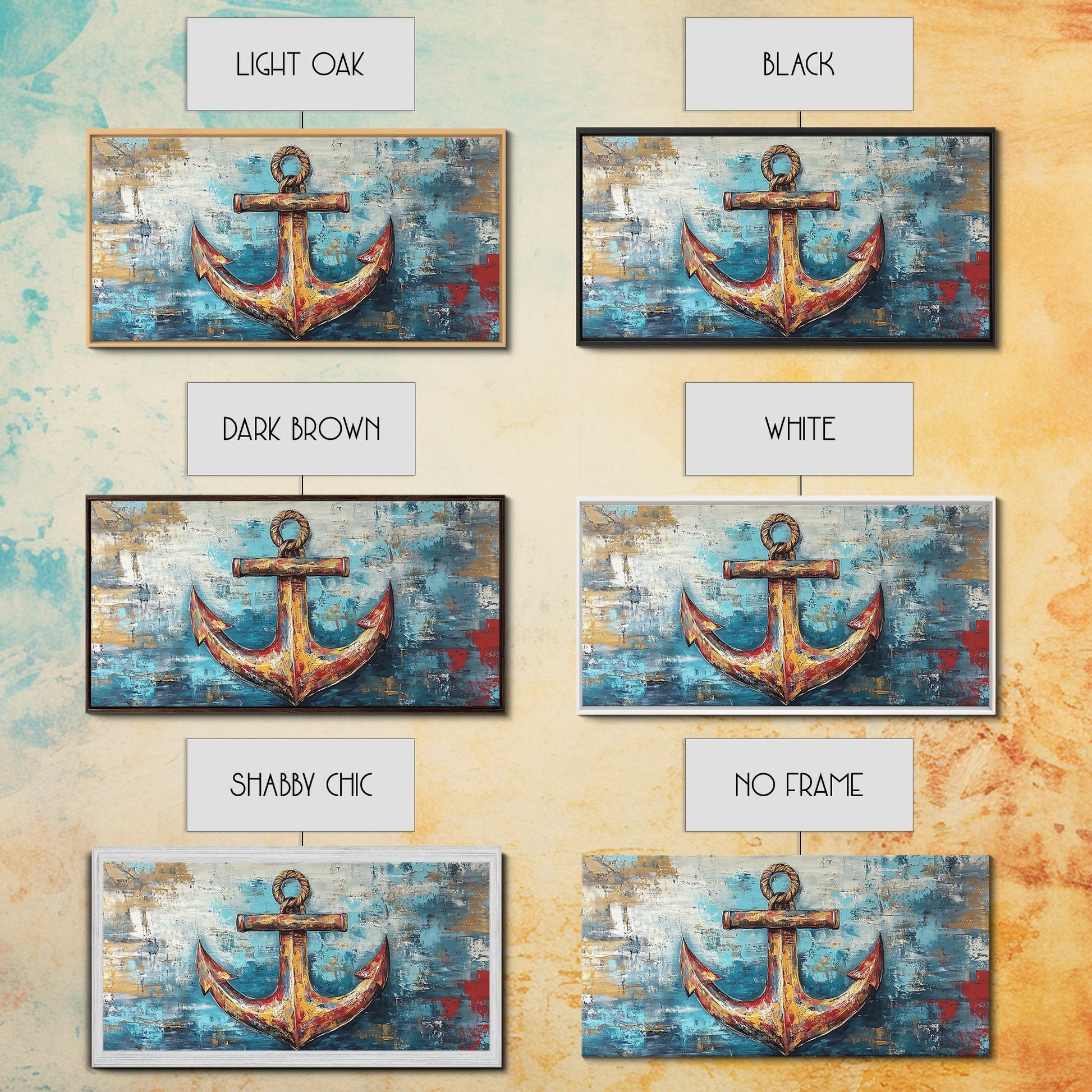 Nautischer Anker, Küstendeko, Rustikale Wandkunst, Extra breites Bild, Nautische Wandkunst, Horizontale Wandkunst, Gerahmter Leinwanddruck, Wohnzimmerkunst
