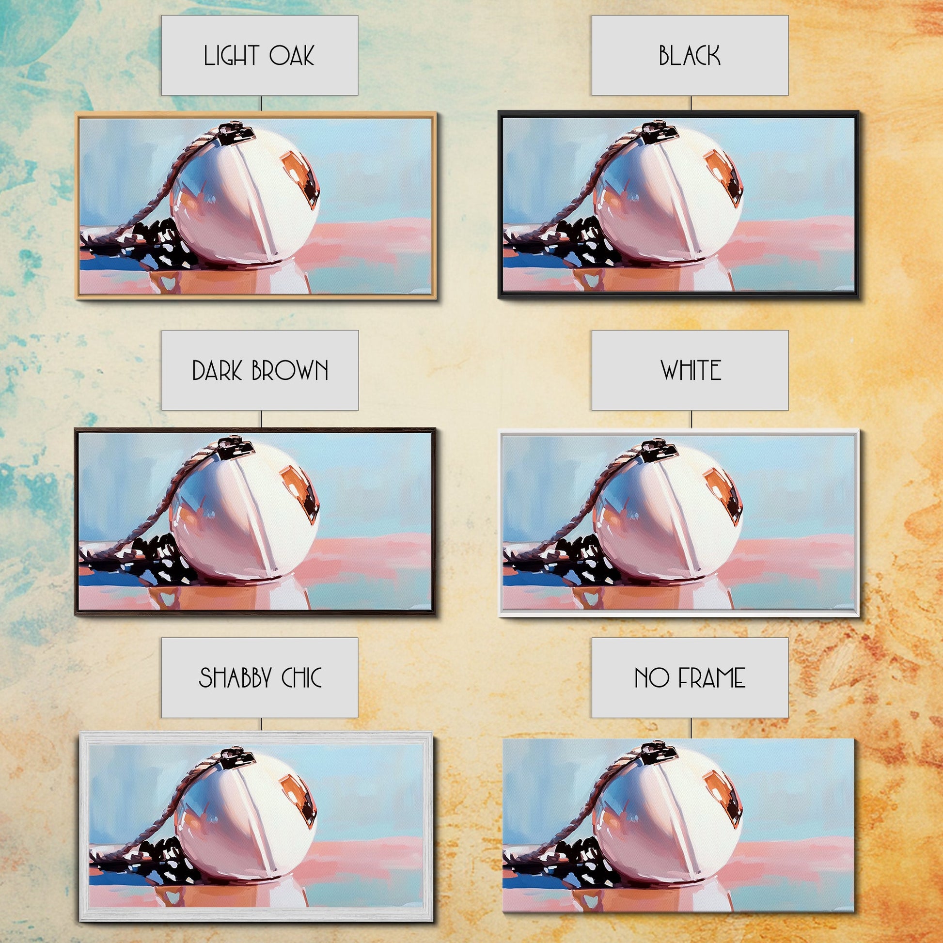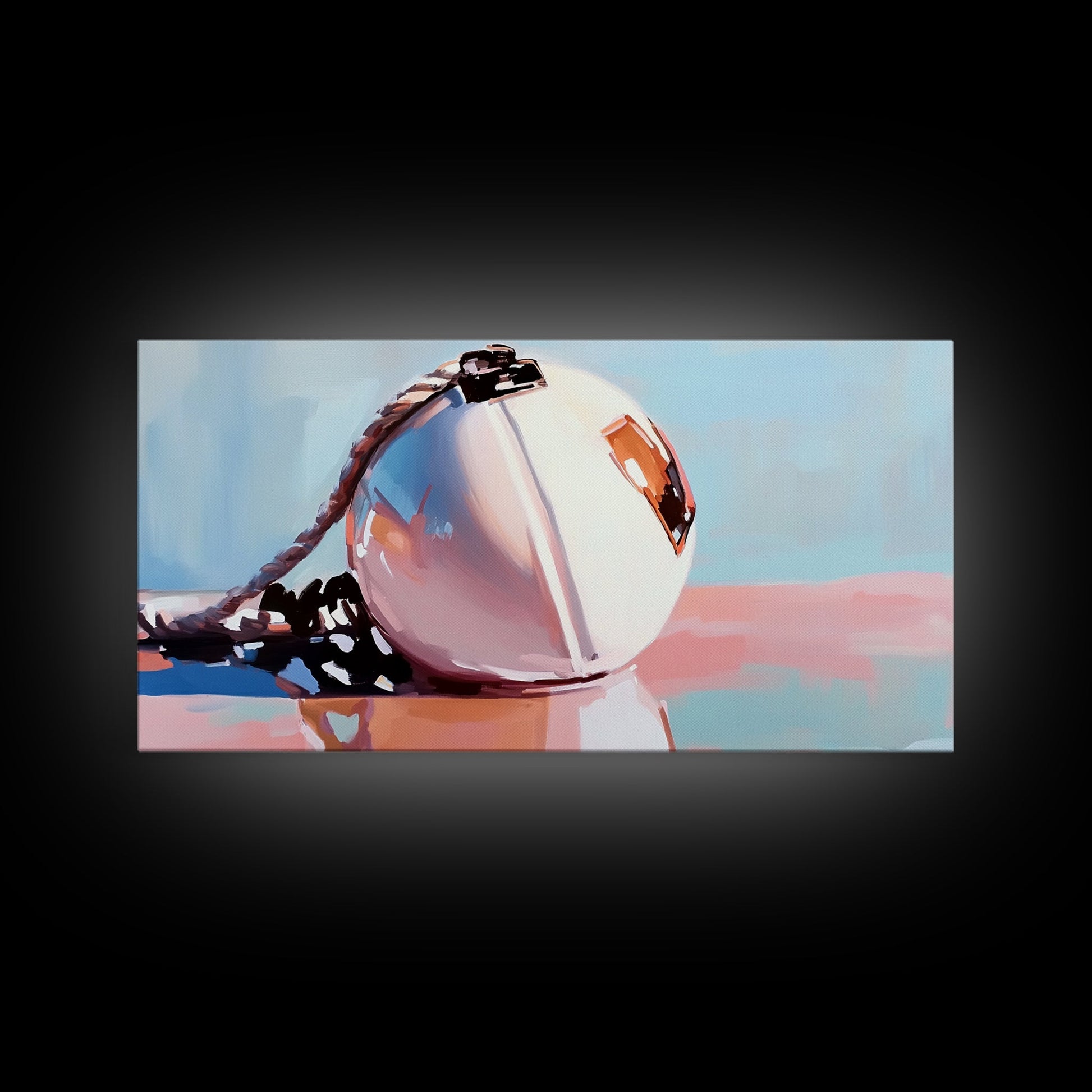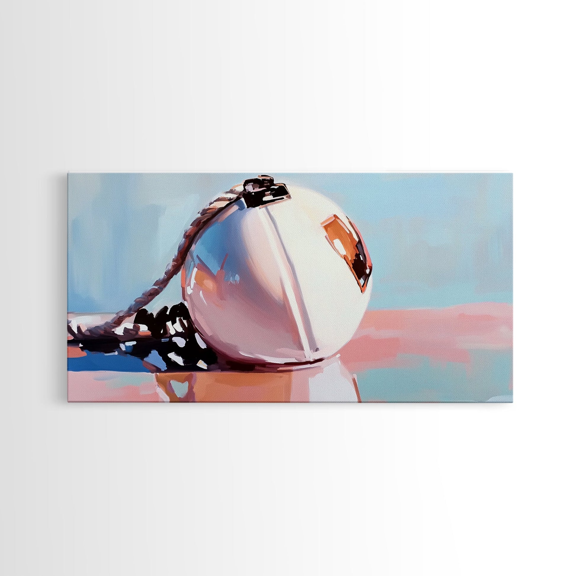 Nautische Boje, Küstenkunst, Minimalistischer Küstenstil, Meeresspiegelungen, Nautische Ästhetik, Dekoration mit Meeresmotiven, Leinwanddruck, Badezimmer