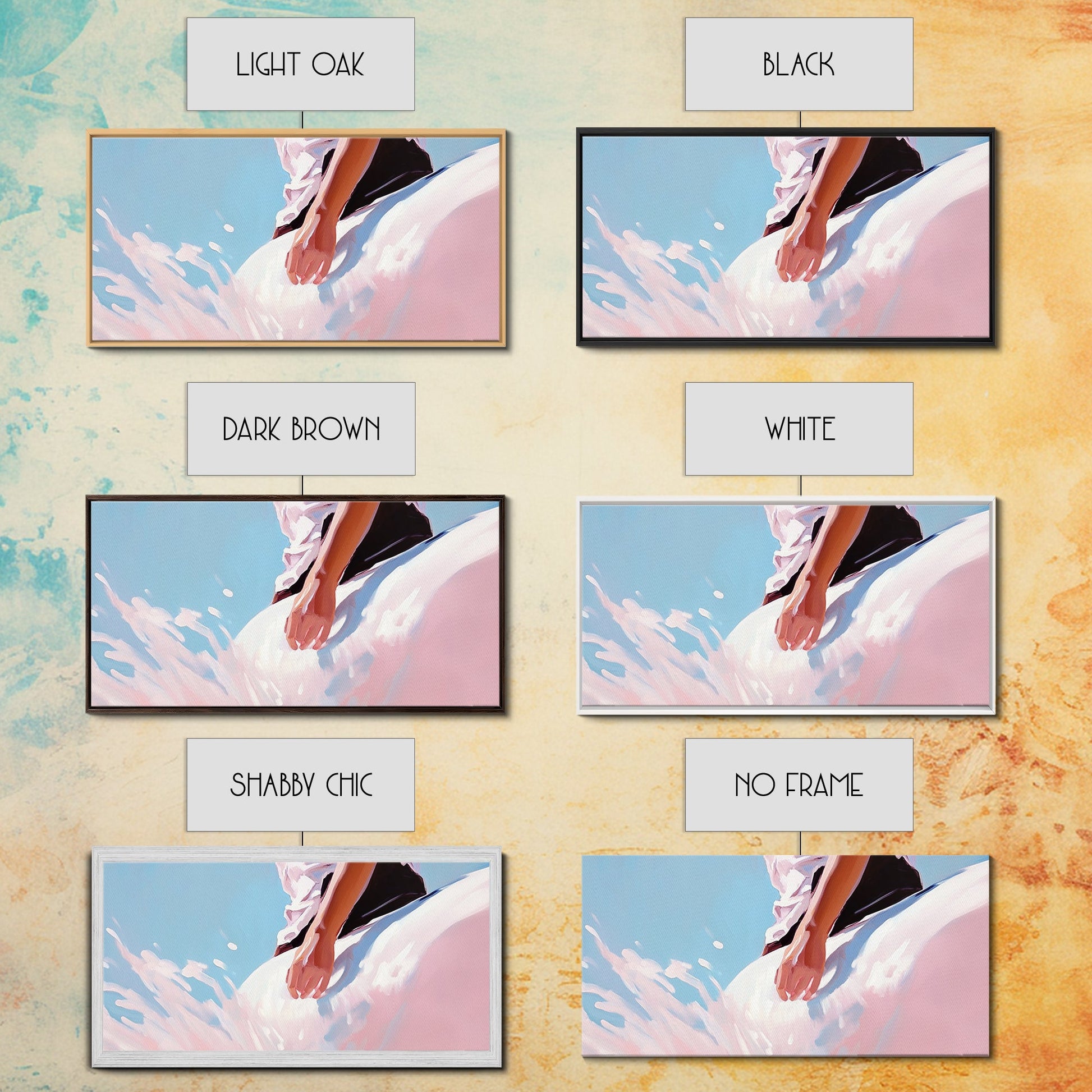 *Optionale Rahmen vergrößern jede Dimension um insgesamt 1,5 Zoll. Beispielsweise misst eine 10x20-Leinwand mit Rahmen insgesamt 11,5x21,5 Zoll. Alle gerahmten Leinwände haben eine Gesamttiefe von 1,5 Zoll.