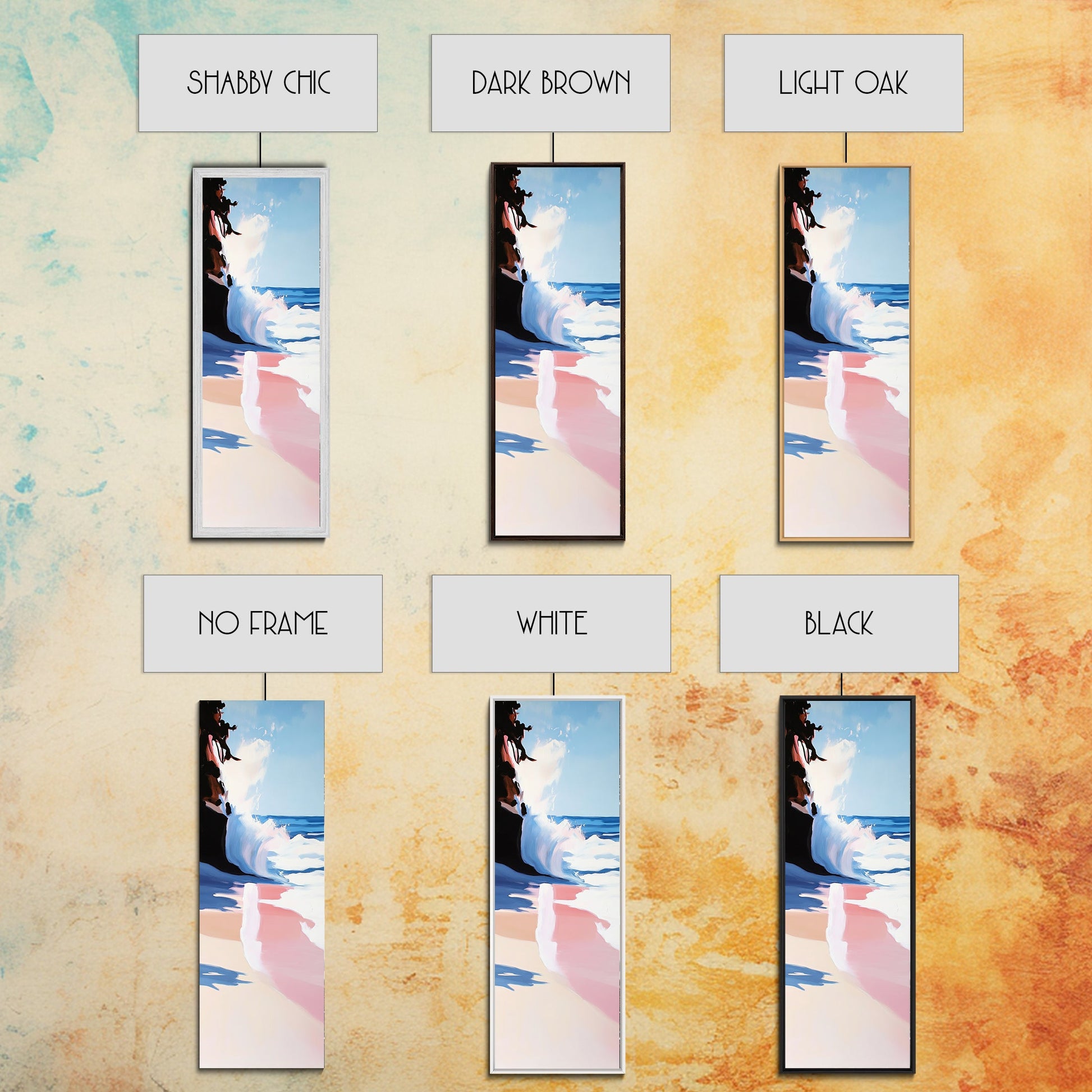 *Optionale Rahmen vergrößern jede Dimension um insgesamt 1,5 Zoll. Beispielsweise misst eine 10x20-Leinwand mit Rahmen insgesamt 11,5x21,5 Zoll. Alle gerahmten Leinwände haben eine Gesamttiefe von 1,5 Zoll.