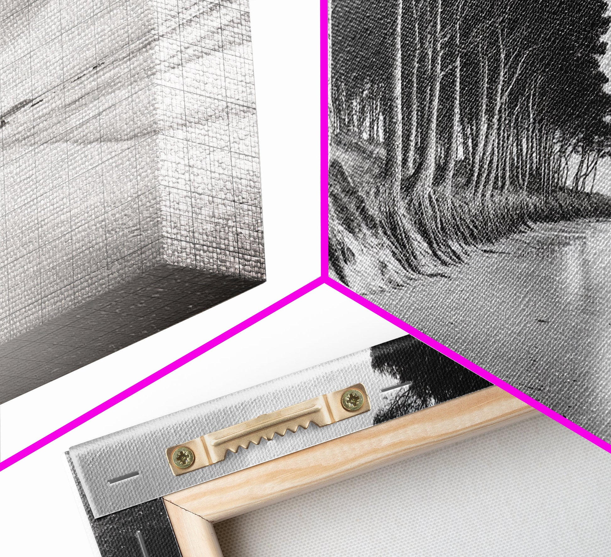 *VERSAND: Jede Leinwand wird sorgfältig in Luftpolsterfolie und Schaumstoffecken verpackt und fertig montiert und mit Zackenaufhängern in einem flachen Karton versendet. Sie benötigen lediglich einen Hammer!