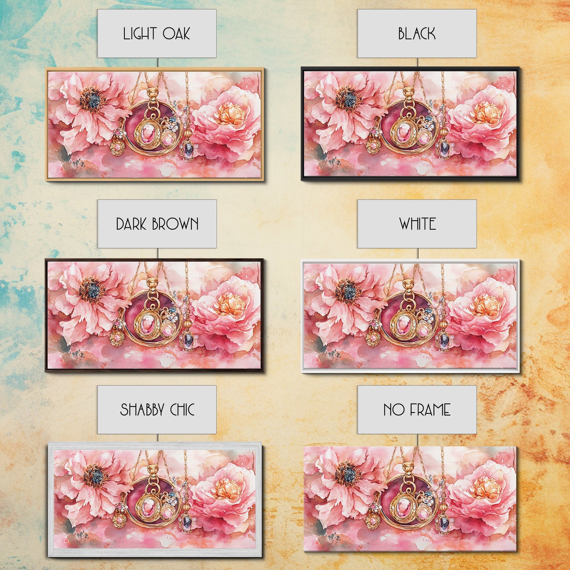 Leinwanddruck mit rosafarbenem Edelsteinschmuck, feminin-elegantes Kunstwerk, glamouröses Rosenbild, Wanddekoration fürs Wohnzimmer, einzigartiges Deko-Geschenk
