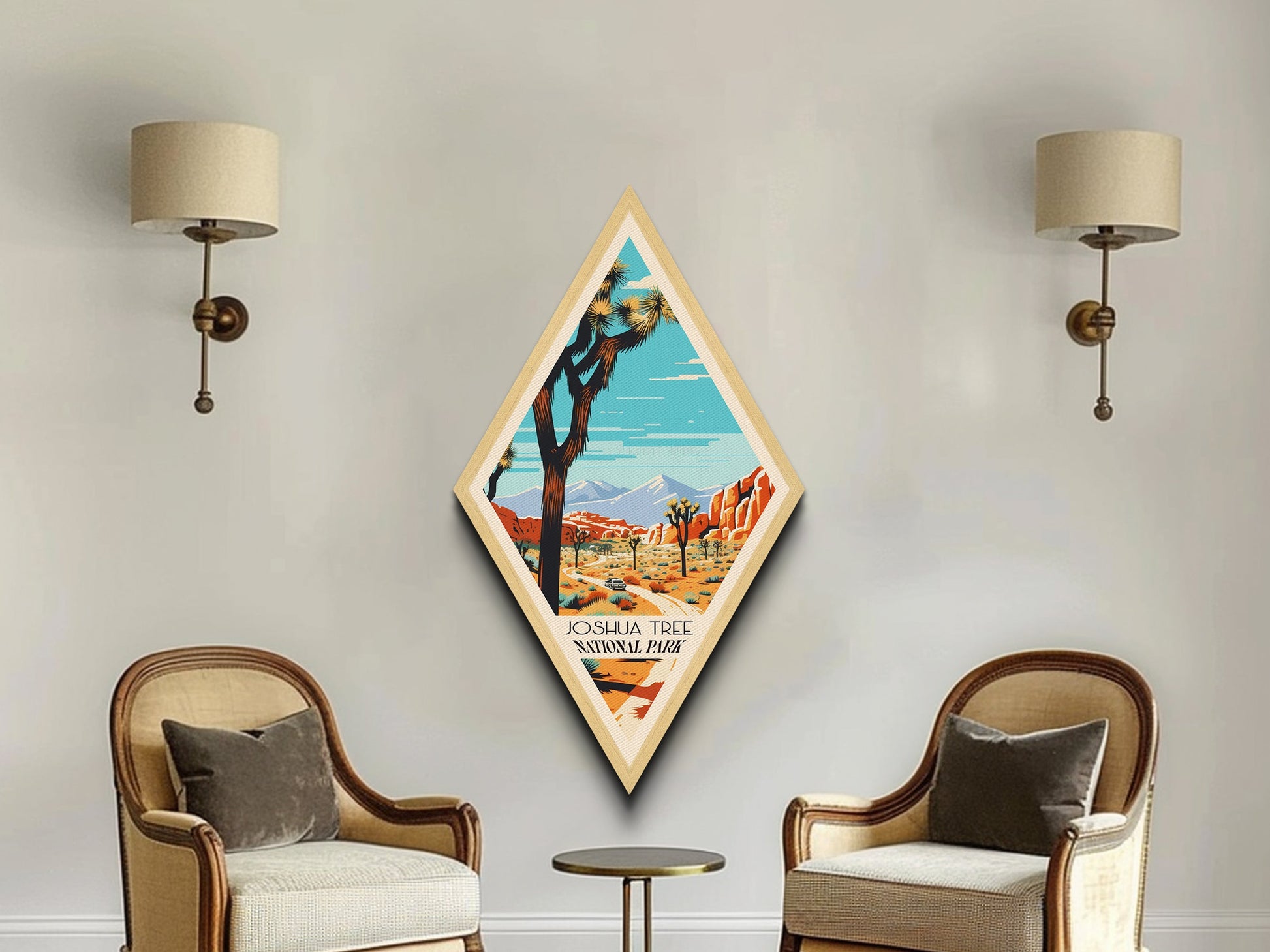 Retro-Reiseposter „Joshua Tree Nationalpark“ auf Leinwand, Reisedeko-Kunst, Midcentury-Modern-Deko, Kalifornien-Reisekunst