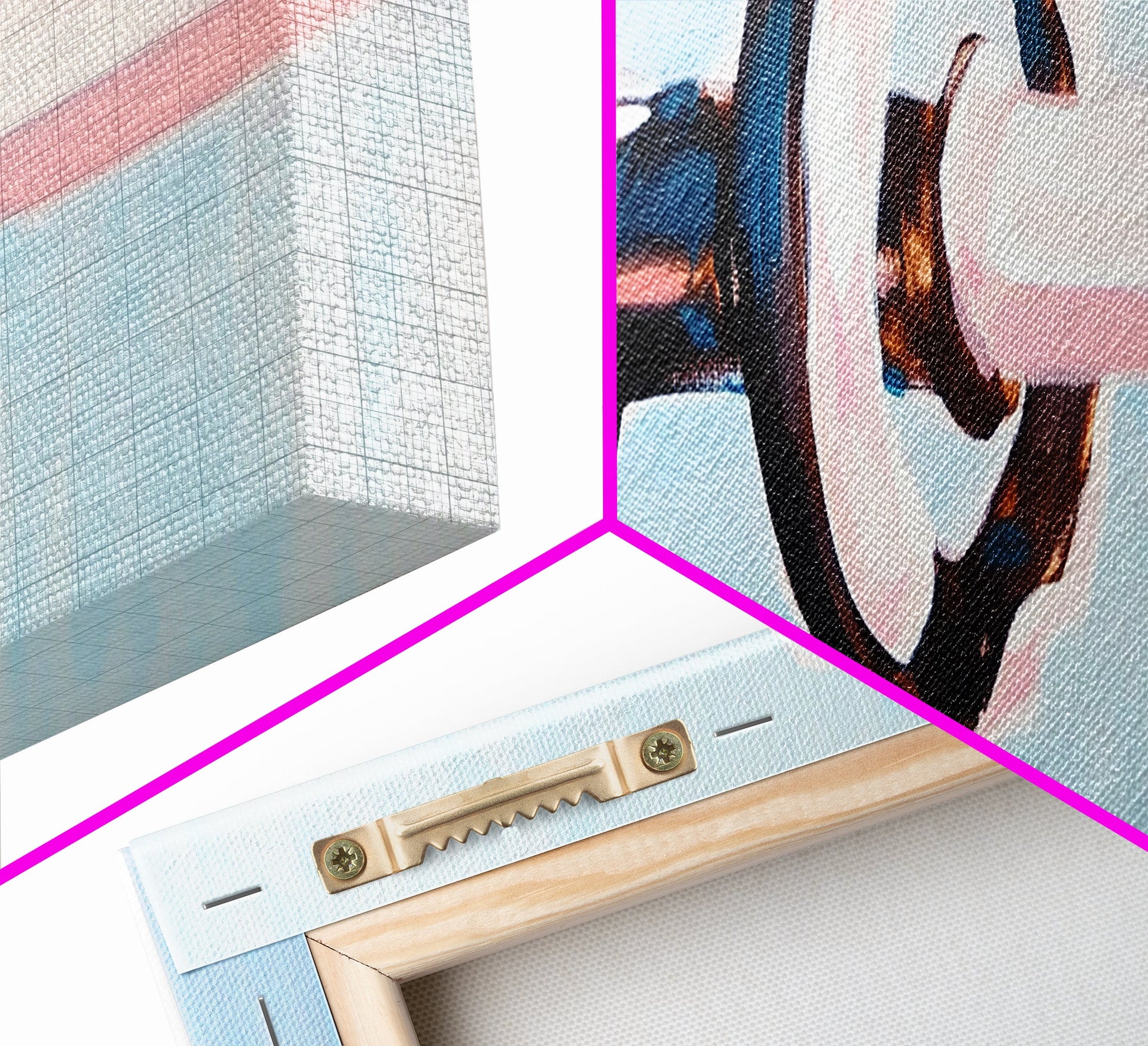 *VERSAND: Jede Leinwand wird sorgfältig in Luftpolsterfolie und Schaumstoffecken verpackt und fertig montiert und mit Zackenaufhängern in einem flachen Karton versendet. Sie benötigen lediglich einen Hammer!