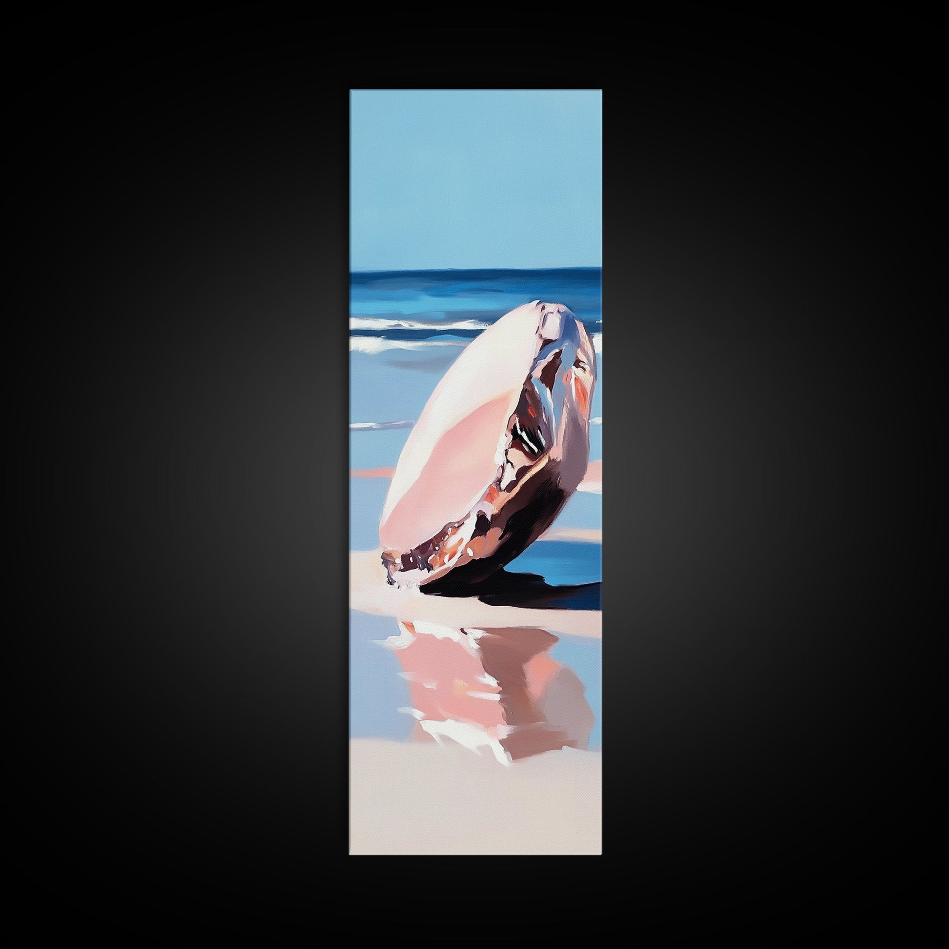 Muschel, Ozean, Strandkunst, Küstenstil, Minimalistisch, Blau, Weiß, Natürliche Dekoration, Modernes Zuhause, Badezimmer, Gerahmter Leinwanddruck