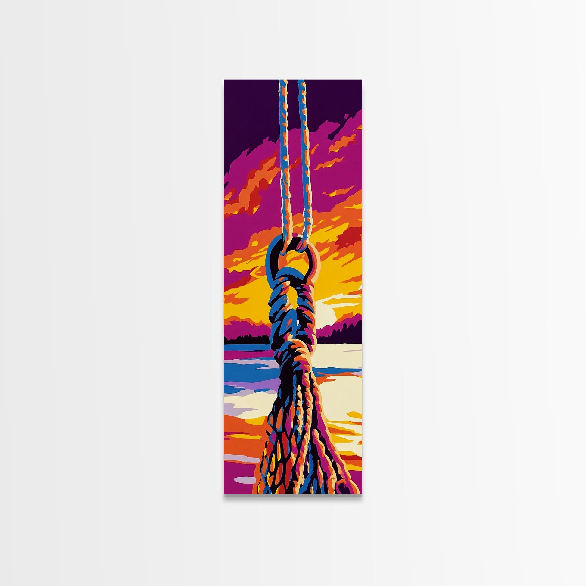 Schaukelseil, maritime Wandkunst, Sonnenuntergangs-Leinwanddruck, Küstenhaus-Dekoration, Strandhauskunst, Wohnzimmerkunst, Boho-Ästhetik