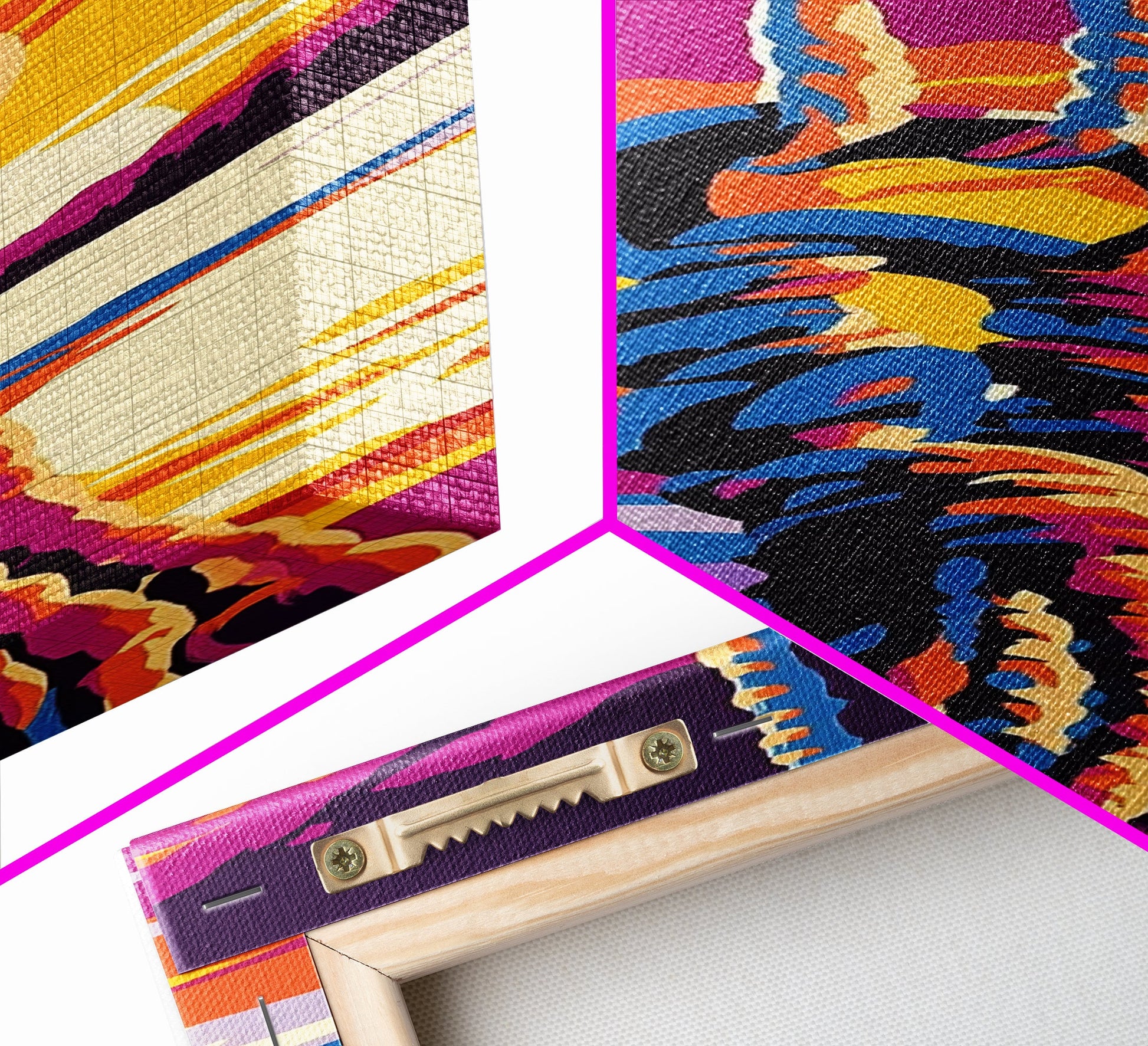 *VERSAND: Jede Leinwand wird sorgfältig in Luftpolsterfolie und Schaumstoffecken verpackt und fertig montiert und mit Zackenaufhängern in einem flachen Karton versendet. Sie benötigen lediglich einen Hammer!