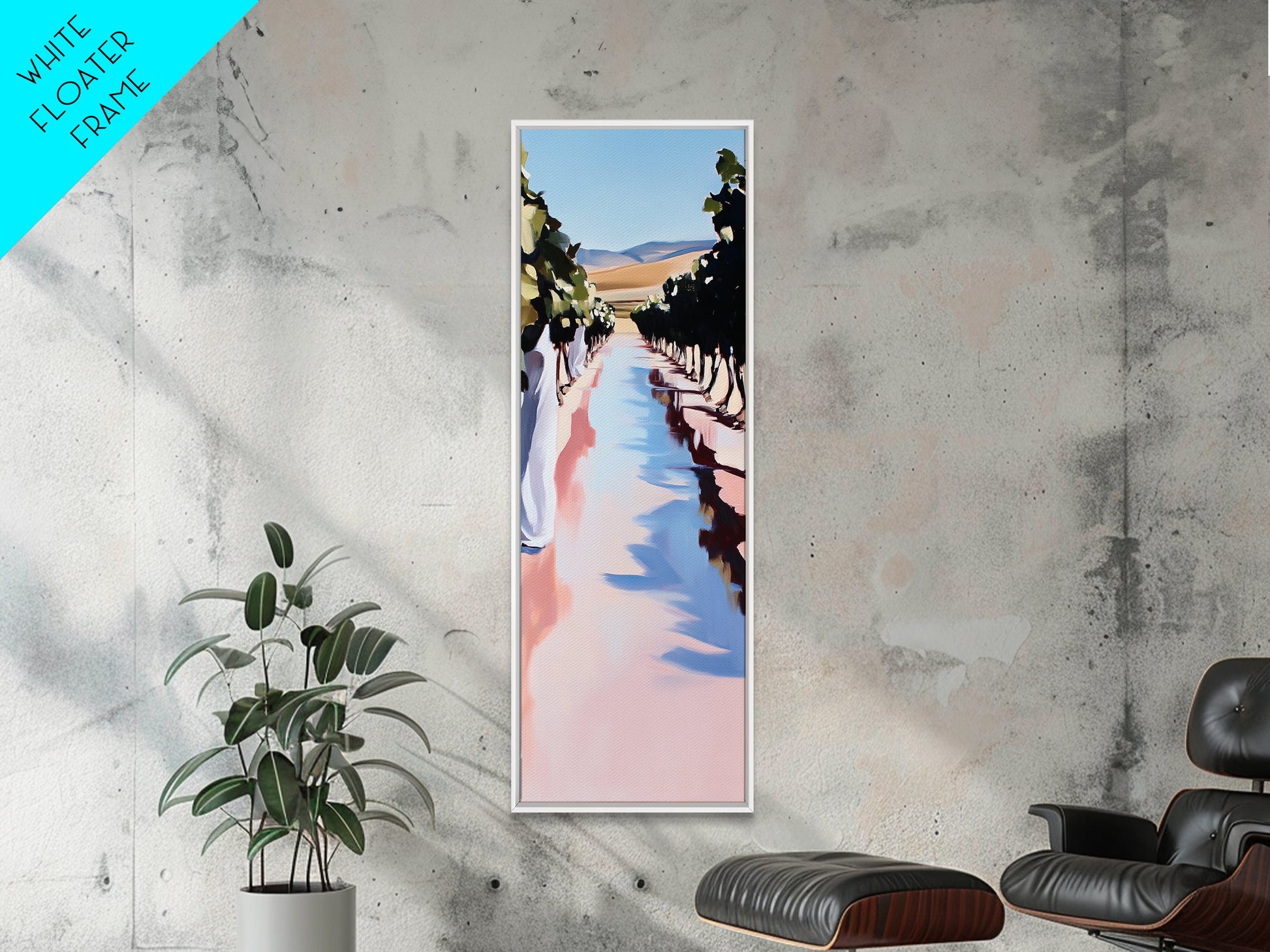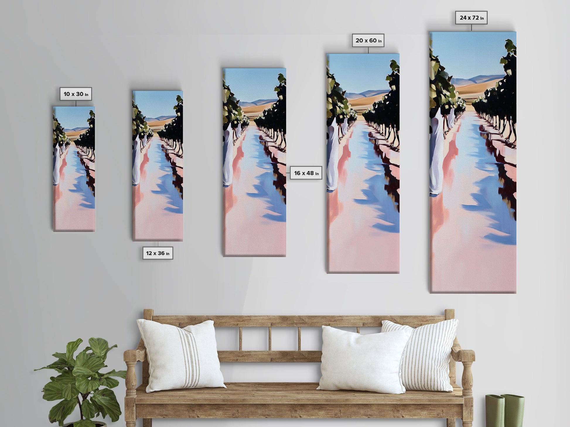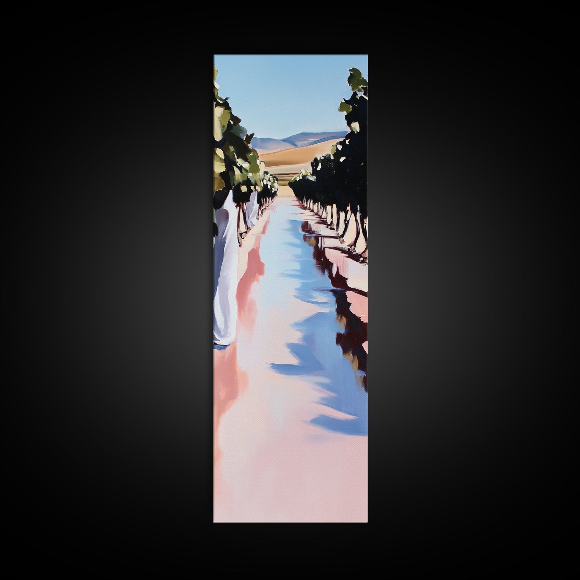 Weinbergweg, sanfte Hügel, ländliches Weinland, Leinwanddruck, naturnahe Wandkunst, elegante Landschaft, idyllische Naturszene