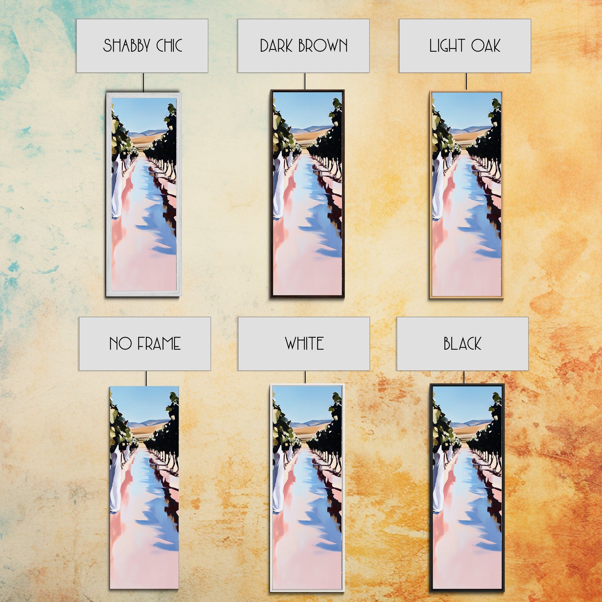 *Optionale Rahmen vergrößern jede Dimension um insgesamt 1,5 Zoll. Beispielsweise misst eine 10x20-Leinwand mit Rahmen insgesamt 11,5x21,5 Zoll. Alle gerahmten Leinwände haben eine Gesamttiefe von 1,5 Zoll.