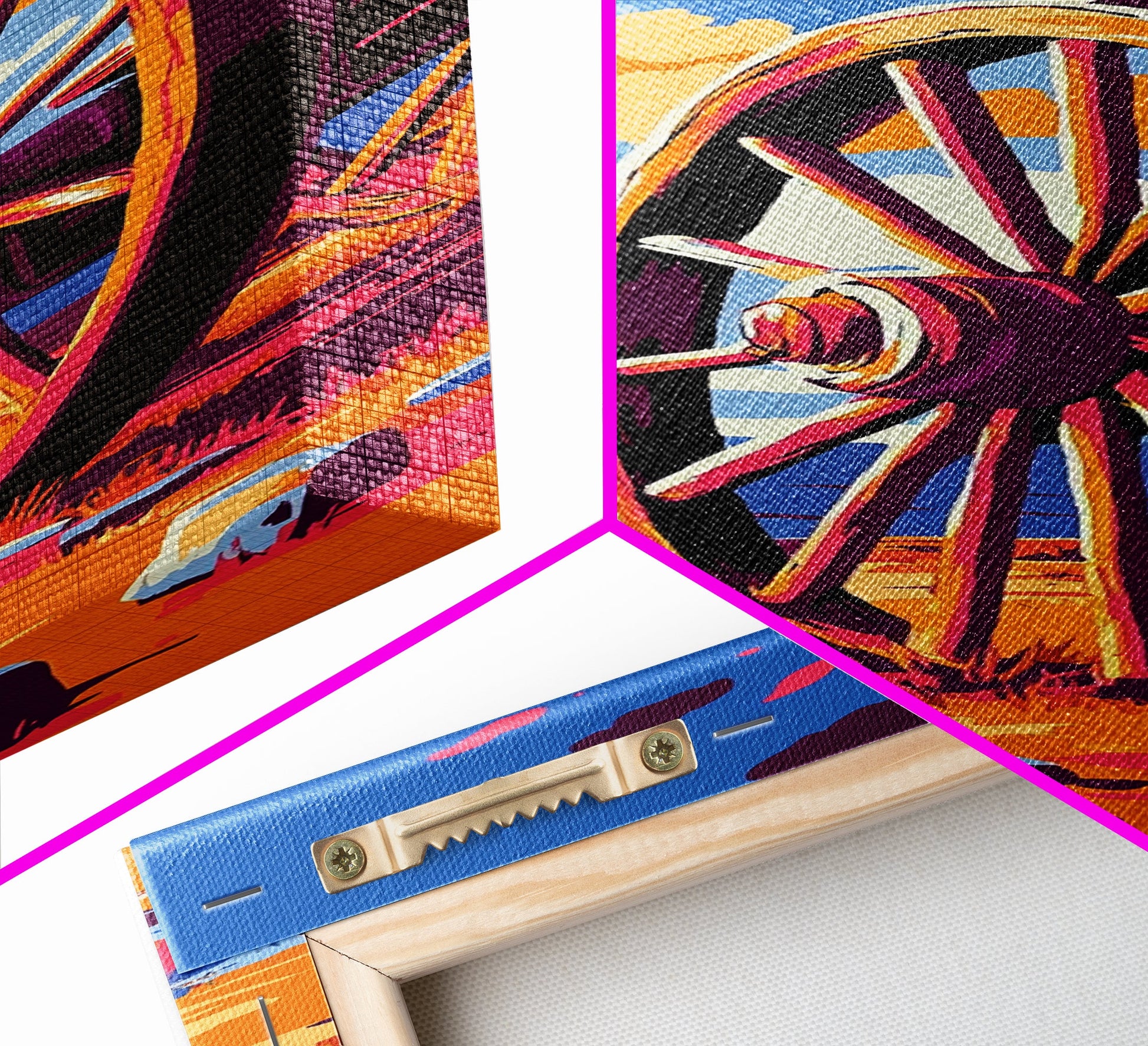 *VERSAND: Jede Leinwand wird sorgfältig in Luftpolsterfolie und Schaumstoffecken verpackt und fertig montiert und mit Zackenaufhängern in einem flachen Karton versendet. Sie benötigen lediglich einen Hammer!