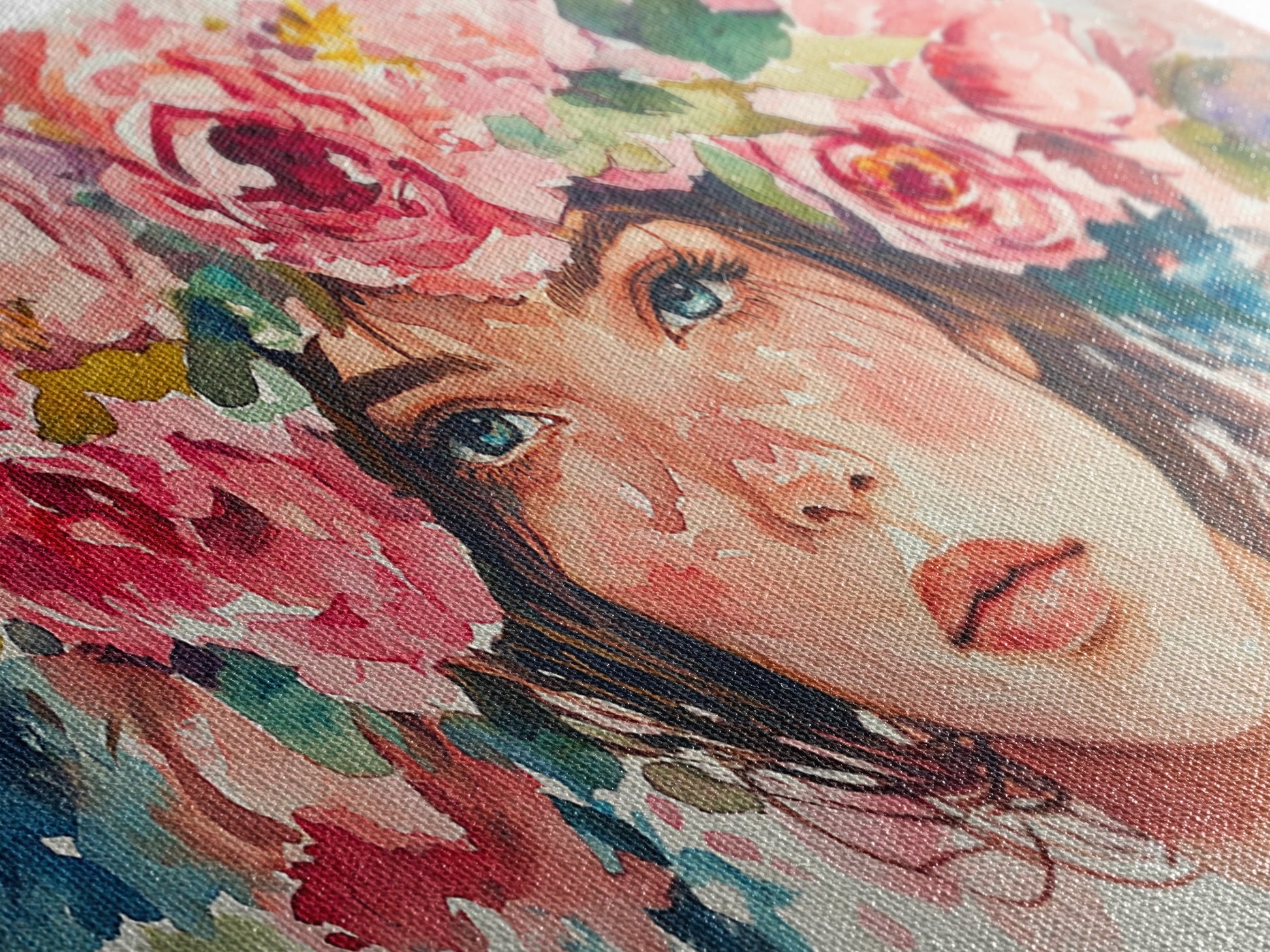 Floral Crown Canvas Print | Goddess Art Print | Pink Abstract Art | Romantic Woman Art | Boho Bedroom Decor Framed Canvas Print
