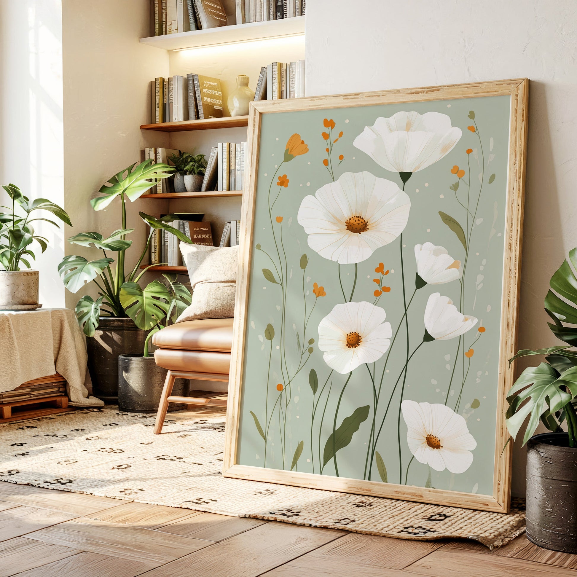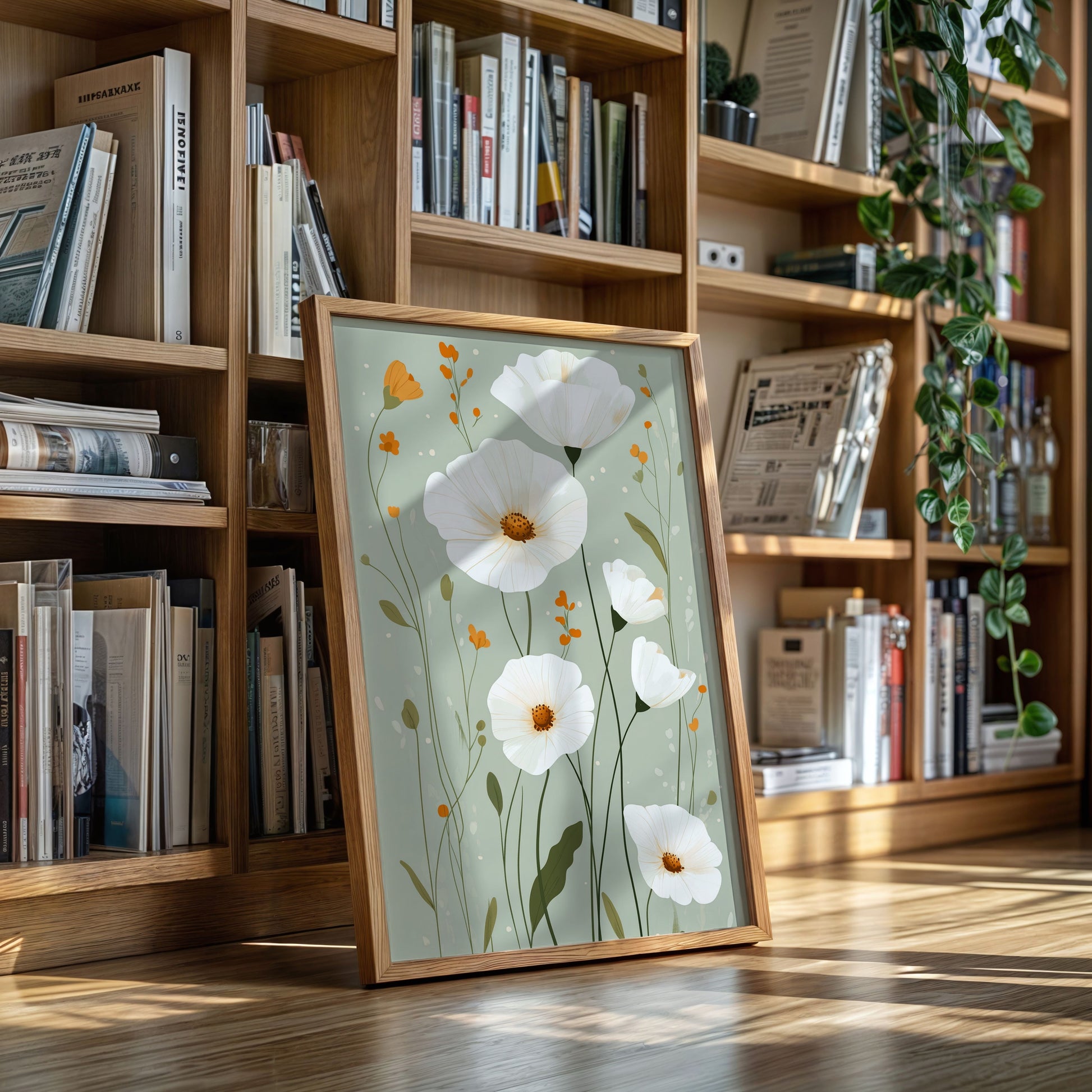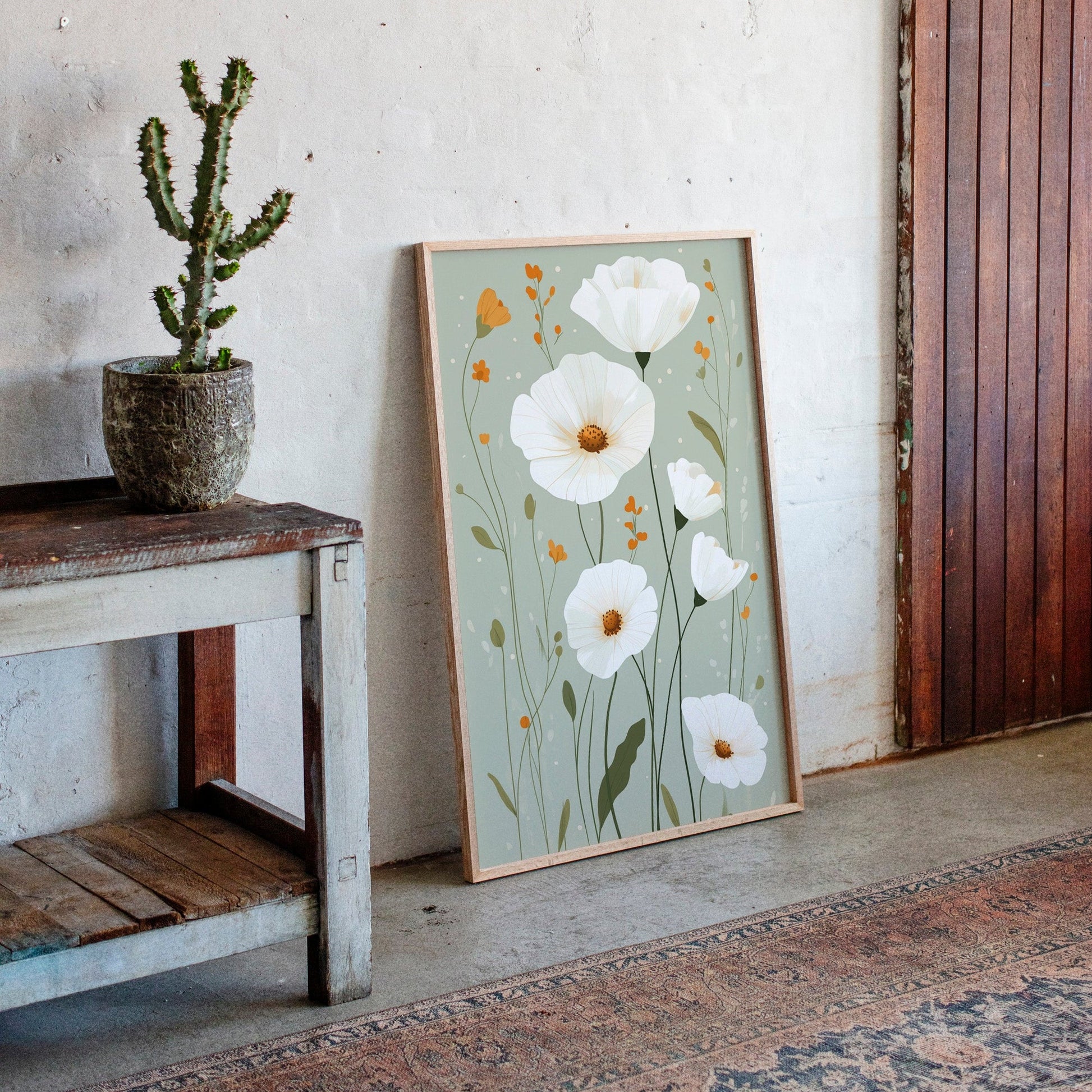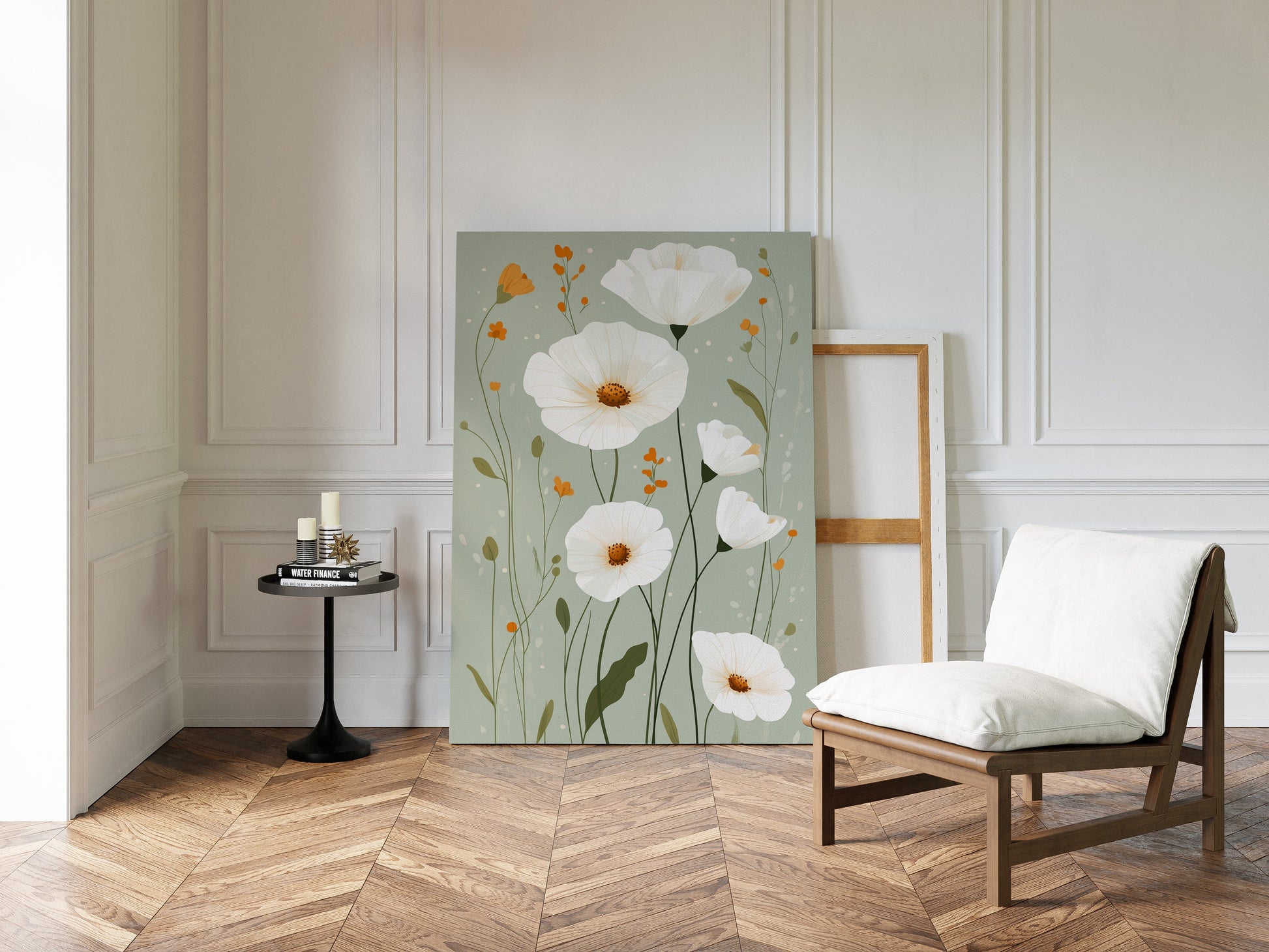 Immerse yourself in the serene beauty of 'Tranquil Meadows,' a captivating modern floral canvas art that effortlessly blends contemporary design with nature's elegance. Featuring delicate white blooms set against a soft sage backdrop, this piece brings a calming and refreshing touch to any space. Perfect for adding a touch of minimalist charm to your living room, bedroom, or office, this artwork embodies the essence of organic modern style. Let the gentle hues and graceful composition inspire a sense of peace and tranquility in your home.
