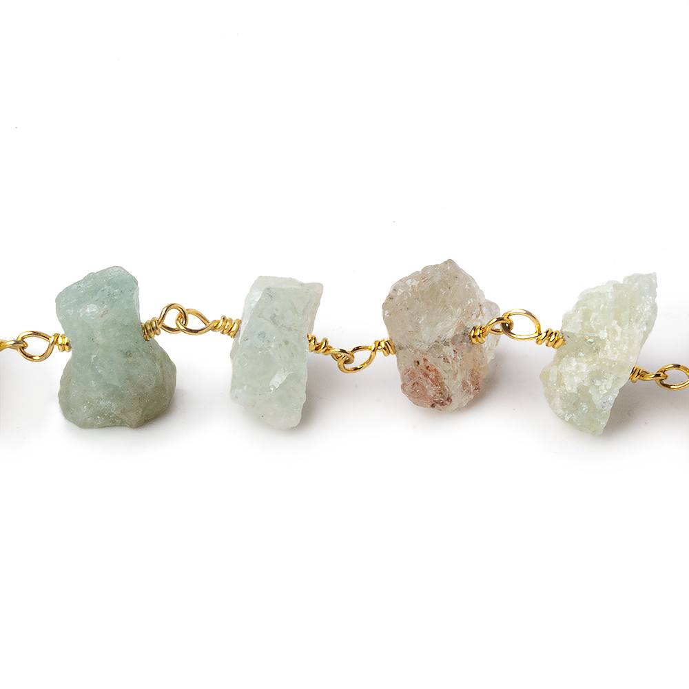10x7-16x8mm Matte Multi Beryl Chips Gold plated Chain sold by the foot consisting of 26 beads for each foot measurement. Custom created by hand from our own supply of quality beads to enable matching of strand to chain.