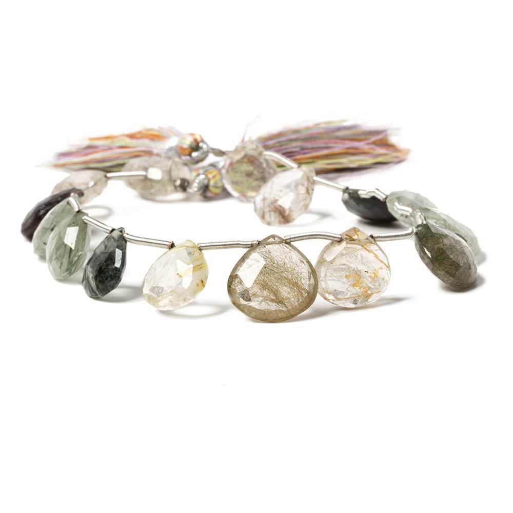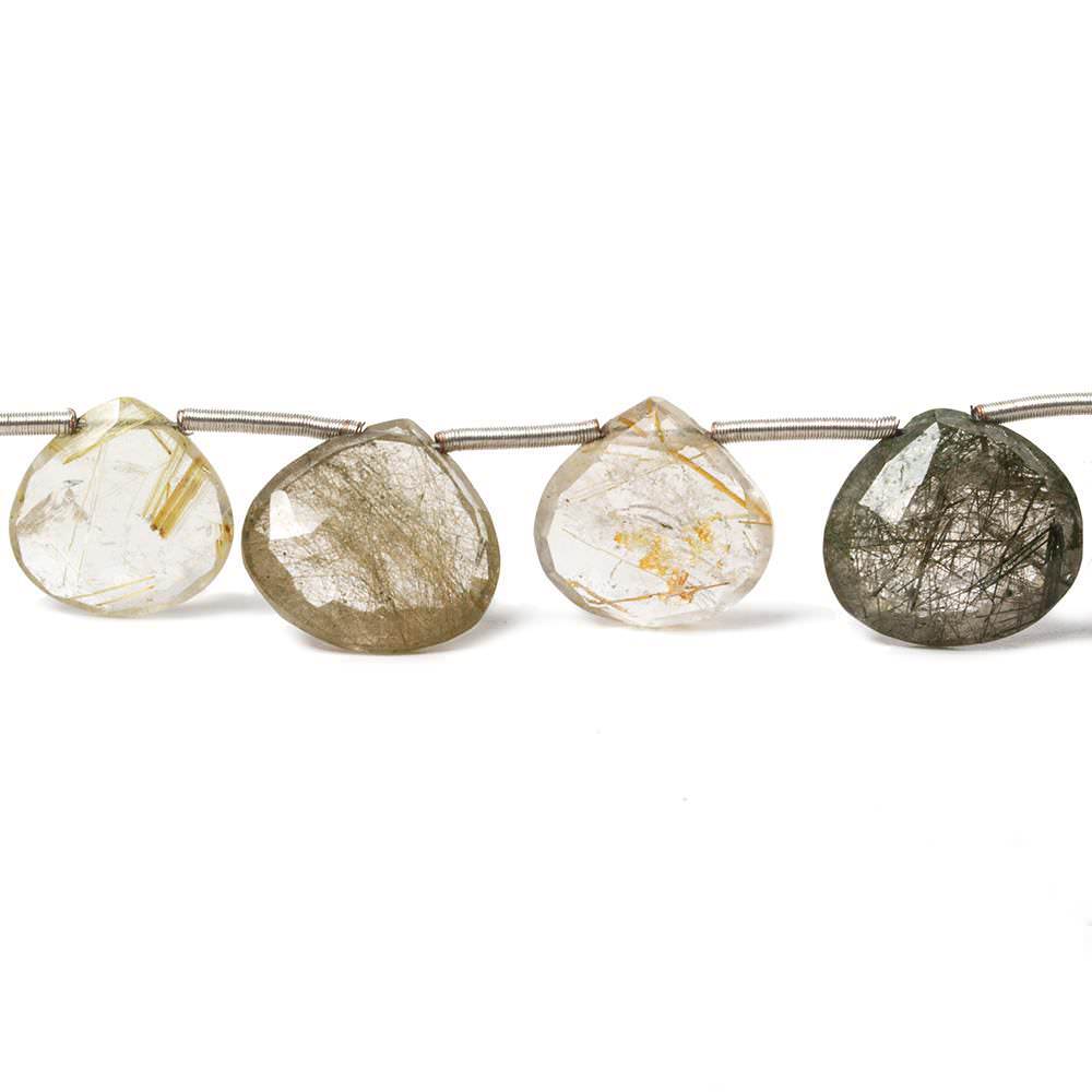 11-13mm Sagenitic Quartz Heart Briolette 8.25 inch 15 inch