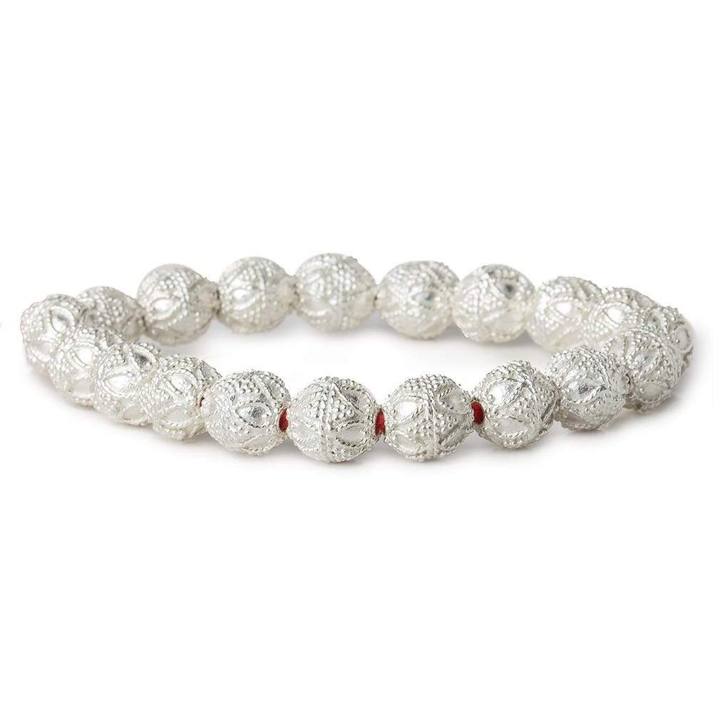 11x10mm Sterling Silver Plated Copper Bead Roval Miligrain Triangle and Heart 8 inch 14 pcs