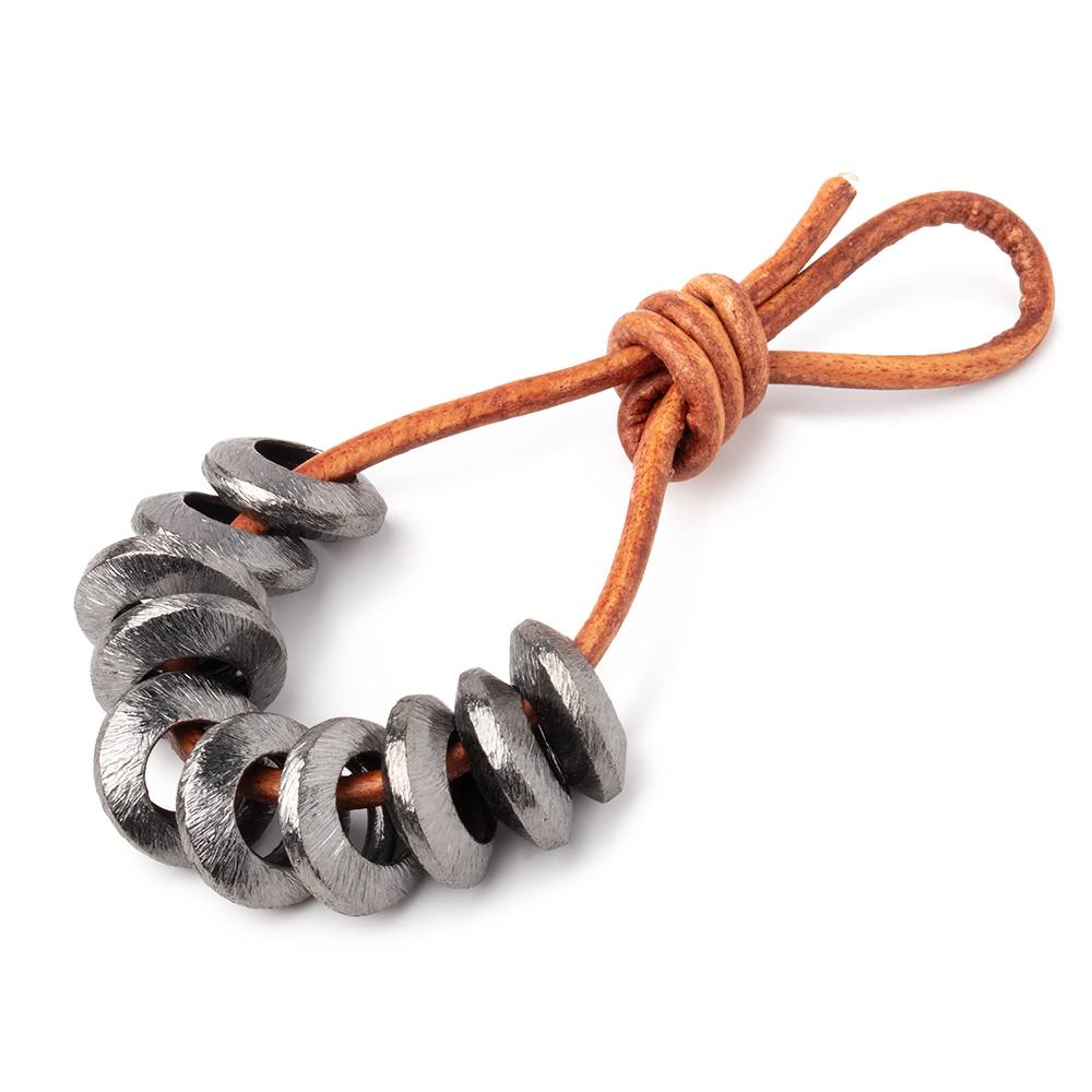 12mm Black Gold Plated Copper Brushed Disc Beads have a 6.5mm large hole and are sold as a set of 10 beads.