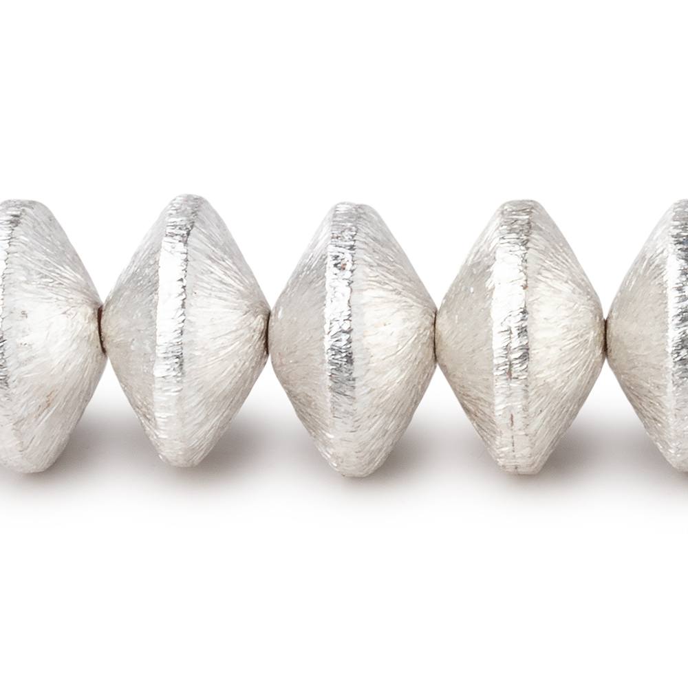 12mm Sterling Silver plated Copper Brushed Disc beads are on an 8 inch strand with 27 pieces and 1.5mm holes. Our attention to detail requires that each bead has an E-Coating to prolong its luster and retain its beauty.