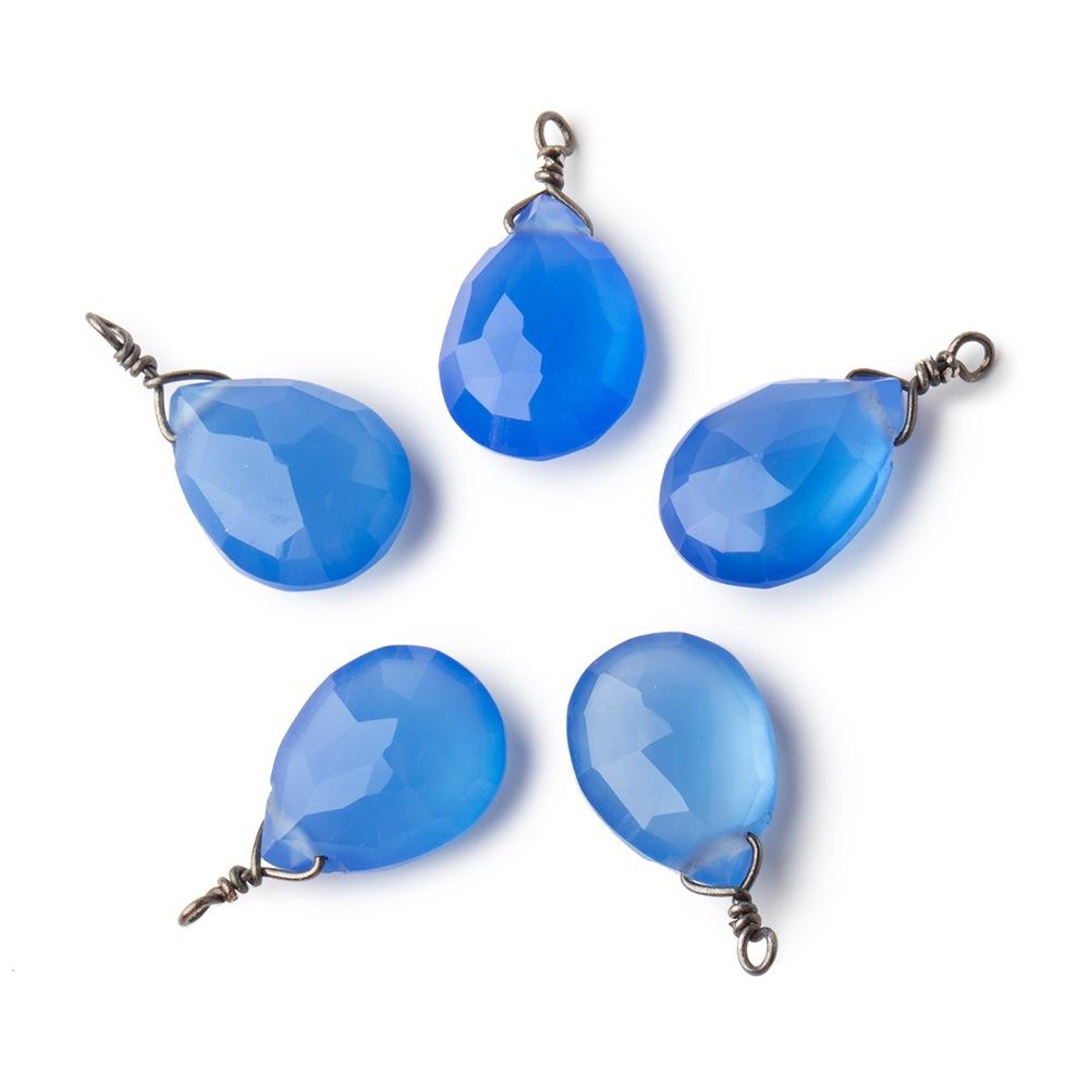 12x9mm Santorini Blue Chalcedony faceted Pear shape Pendant wrapped with Black Gold over .925 Silver Wire at the top, sold as 1 focal bead.