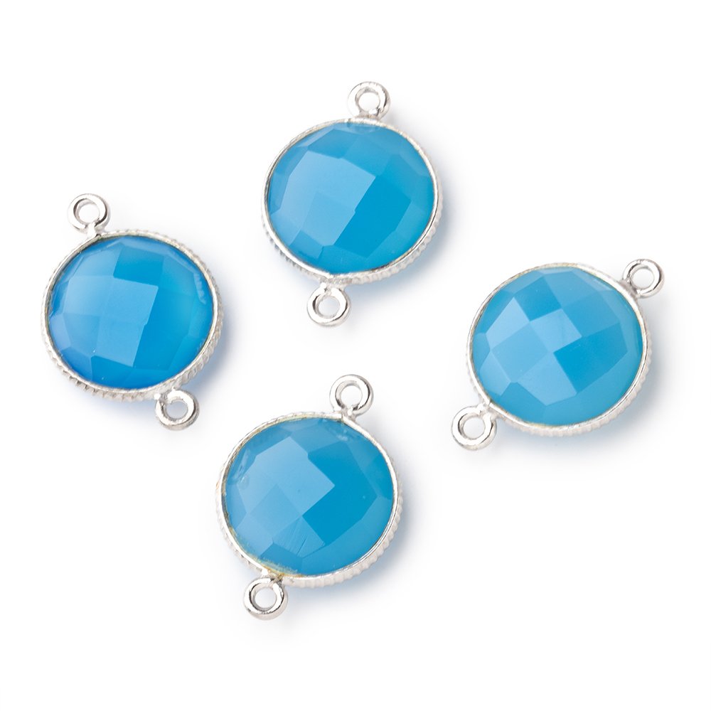 15mm Silver Corrugated Bezel Santorini Blue Chalcedony coin 2 ring Connector 1 pc