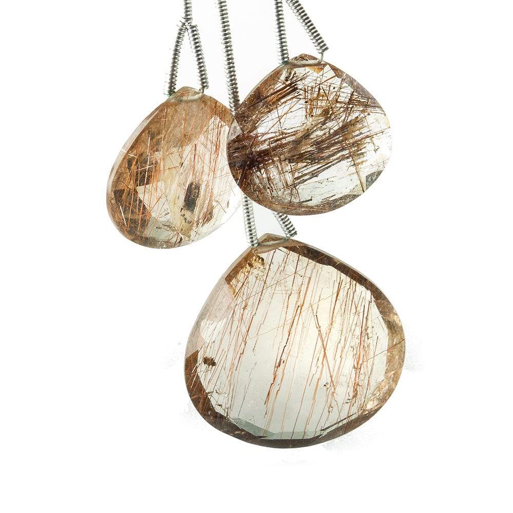 16.5x17.5-23x23.5mm Rutilated Quartz Faceted Heart Focal Bead 3 pieces