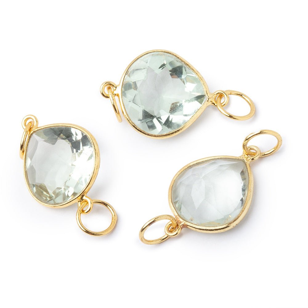 16mm Vermeil Bezel Prasiolite Pavilion Faceted Heart Connector 1 piece
