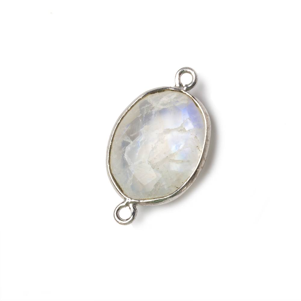 17x13mm Silver Bezel Rainbow Moonstone Faceted Oval Connector 1 piece