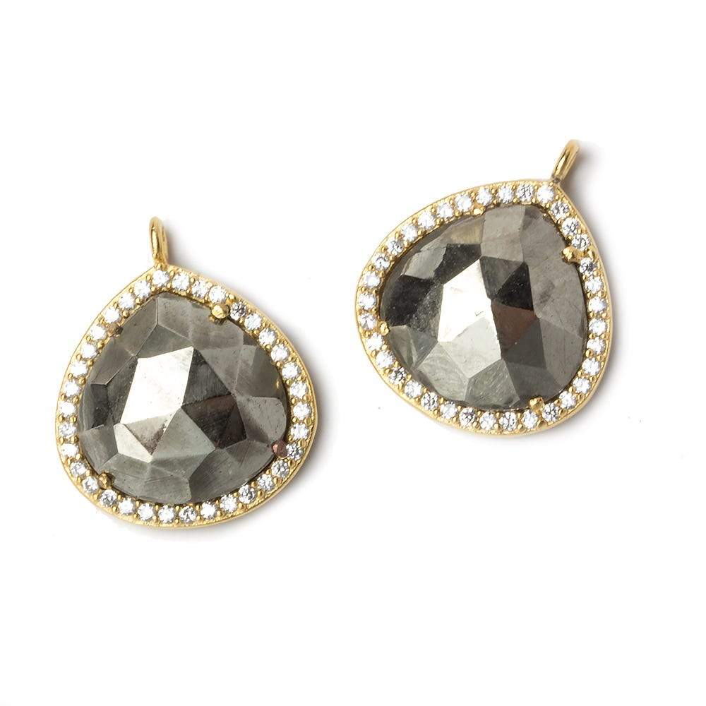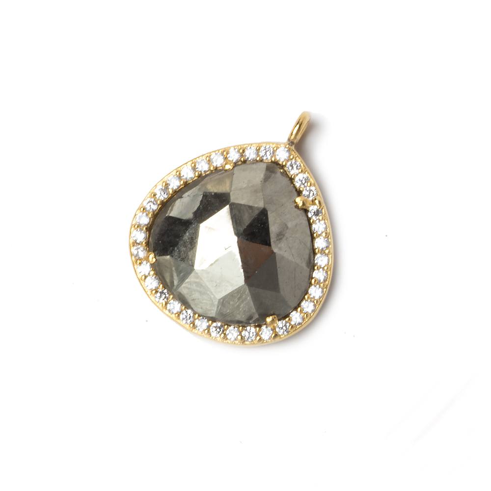 17x17mm Vermeil Bezeled Cubic Zirconia and Pyrite Heart Pendant with one soldered ring, focal bead sold as 1 piece.