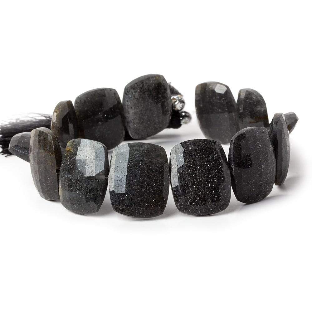 Celestial Quartz side drilled Faceted Cushion beads have a deeply saturated brownish black hued body with minute metallic platelets, the beads have a vitreous luster, gems present with a semi-transparent quality, and the make is excellent with smooth polish & excellent faceting. These quartz bodies with shimmering silver-hued platelets resemble the night sky, hence their name Celestial Quartz (Elestial Quartz). This new gemstone find is mined out of Madagascar.