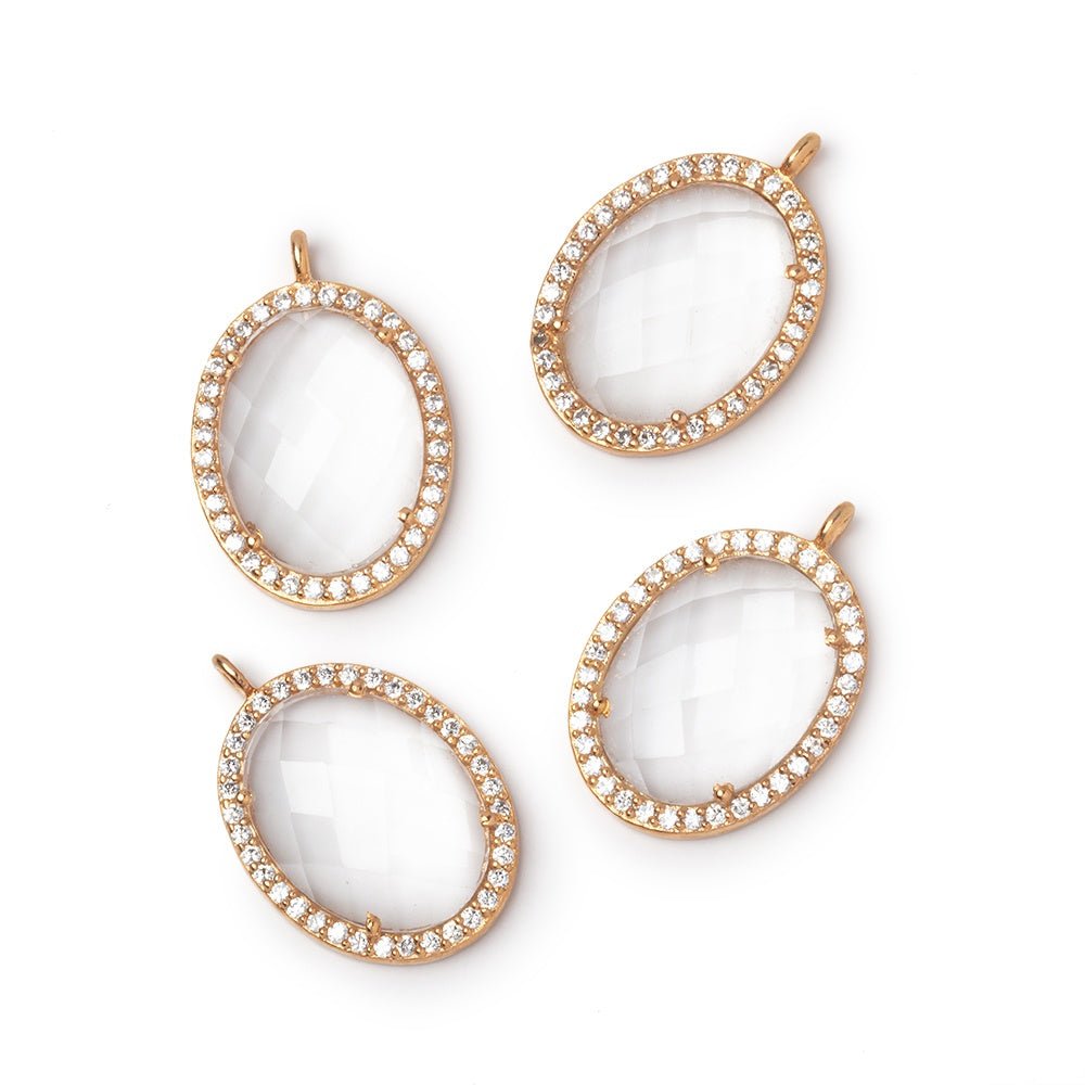 19x15mm Rose Gold Plated Bezel with pave' Cubic Zirconia brilliant rounds surrounding a Crystal Quartz faceted Oval with one 3mm side facing ring are well-made focals, crafted from high grade gemstone materials, and are sold as one piece.